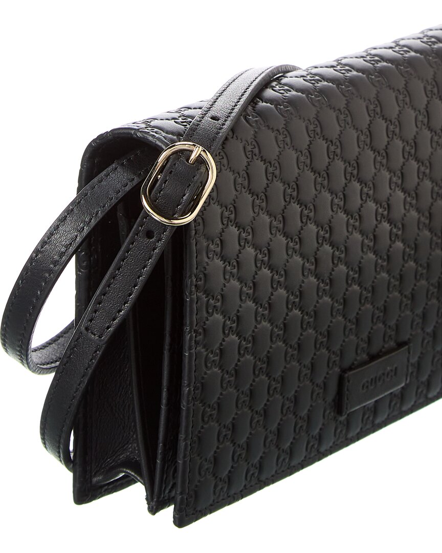 Introducing the Gucci Micro Guccissima Leather Crossbody, the epitome of Italian luxury redefined. Made in Italy with exceptional craftsmanship, this crossbody bag showcases the iconic black GG leather and light fine gold hardware, making it a true statement piece.Designed for the modern woman, this crossbody bag boasts a thoughtfully organized interior. The leather and fabric lining houses a zippered pocket, card slots, and a bill compartment, ensuring you can keep your essentials in order while on the go. With a compact size of 7.75 inches wide, 4.5 inches high, and 1.5 inches deep, it offers convenience without sacrificing style.The adjustable and removable shoulder strap drops 24 inches, allowing you to wear it as a crossbody or carry it as a clutch. The fold-over flap with snap closure adds a touch of sophistication to the overall design.Please note that all measurements were taken by hand and are approximate, so slight variations may occur. Rest assured, our products are . In some cases, we purchase merchandise from trusted independent suppliers and not directly from the brand owner. However, in all cases, we stand by the of every product sold on our site.Elevate your accessory game with the Gucci Micro Guccissima Leather Crossbody. With its exquisite craftsmanship, versatile design, and unmistakable brand, this crossbody bag is a must-have addition to any fashion-forward woman's collection.