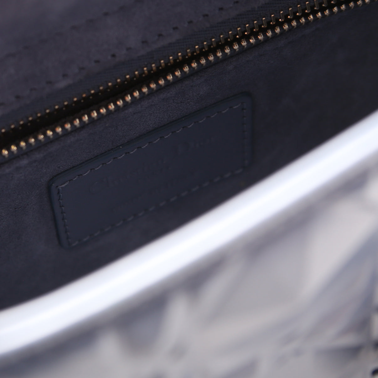 This Dior Lady Dior Medium is d 100% . The exterior is in the classic Dior Diamond Cannage Calfskin leather.