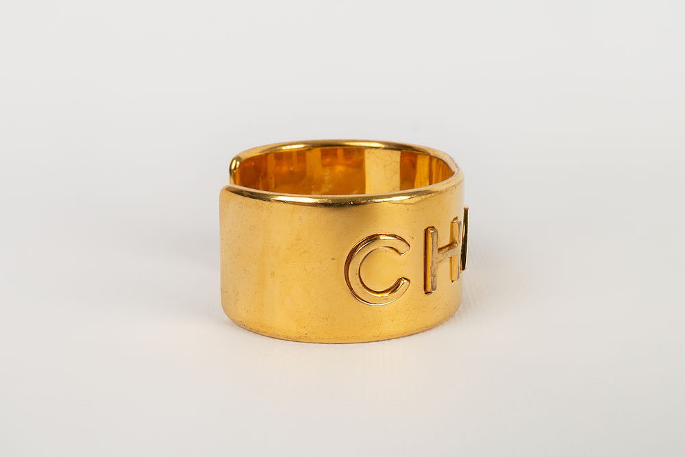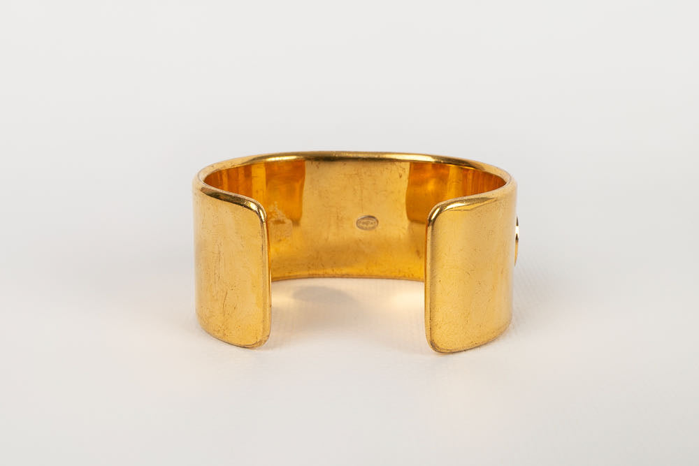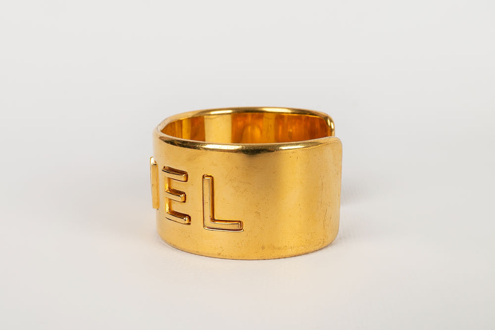 CHANEL -(Made in France) Manchette en métal doré. Collection Automne-Hiver 1997. Présence de rayures sur le métal.