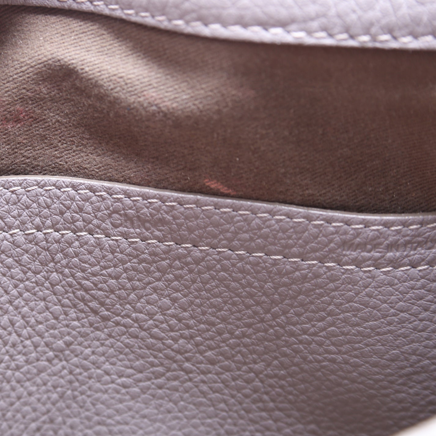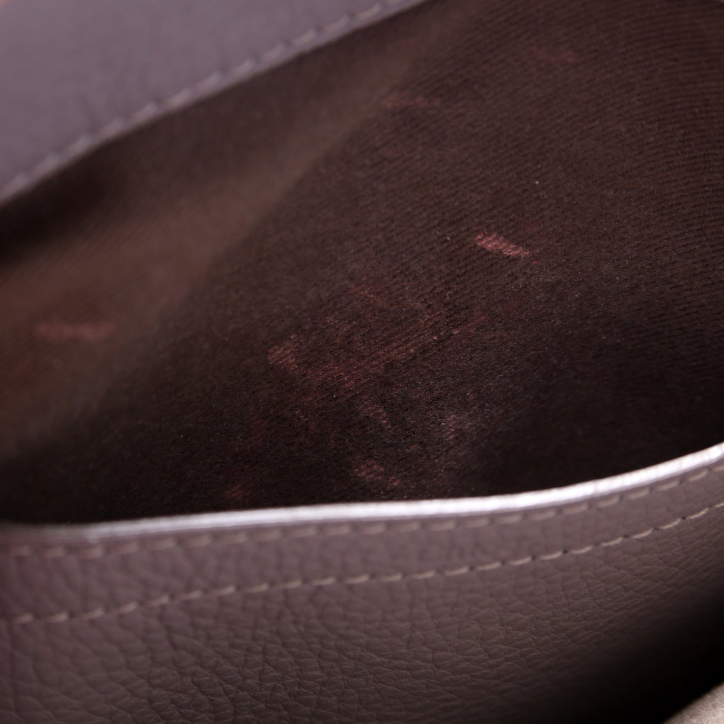 Exterior: The exterior leather is free of any rips or cracks. The base has a small black mark. The front stitching has minor discoloration on the flap.