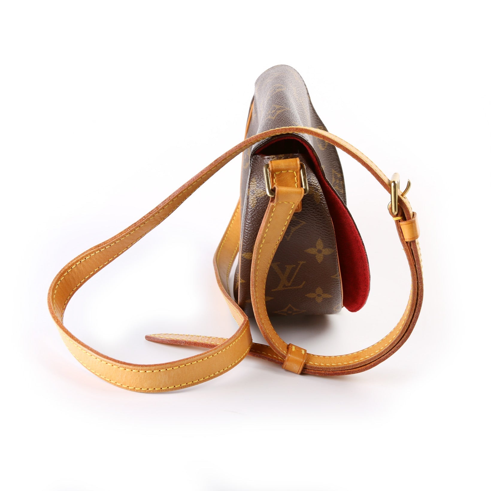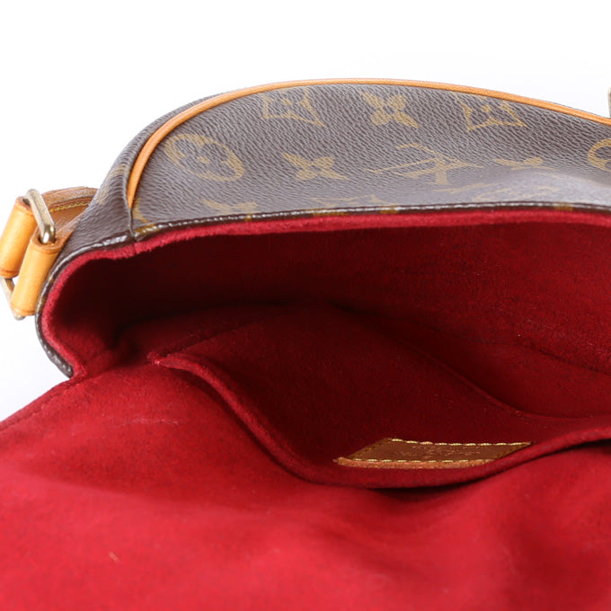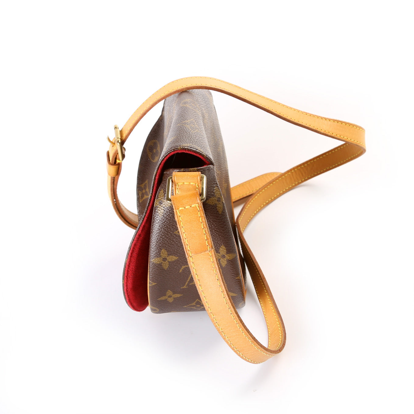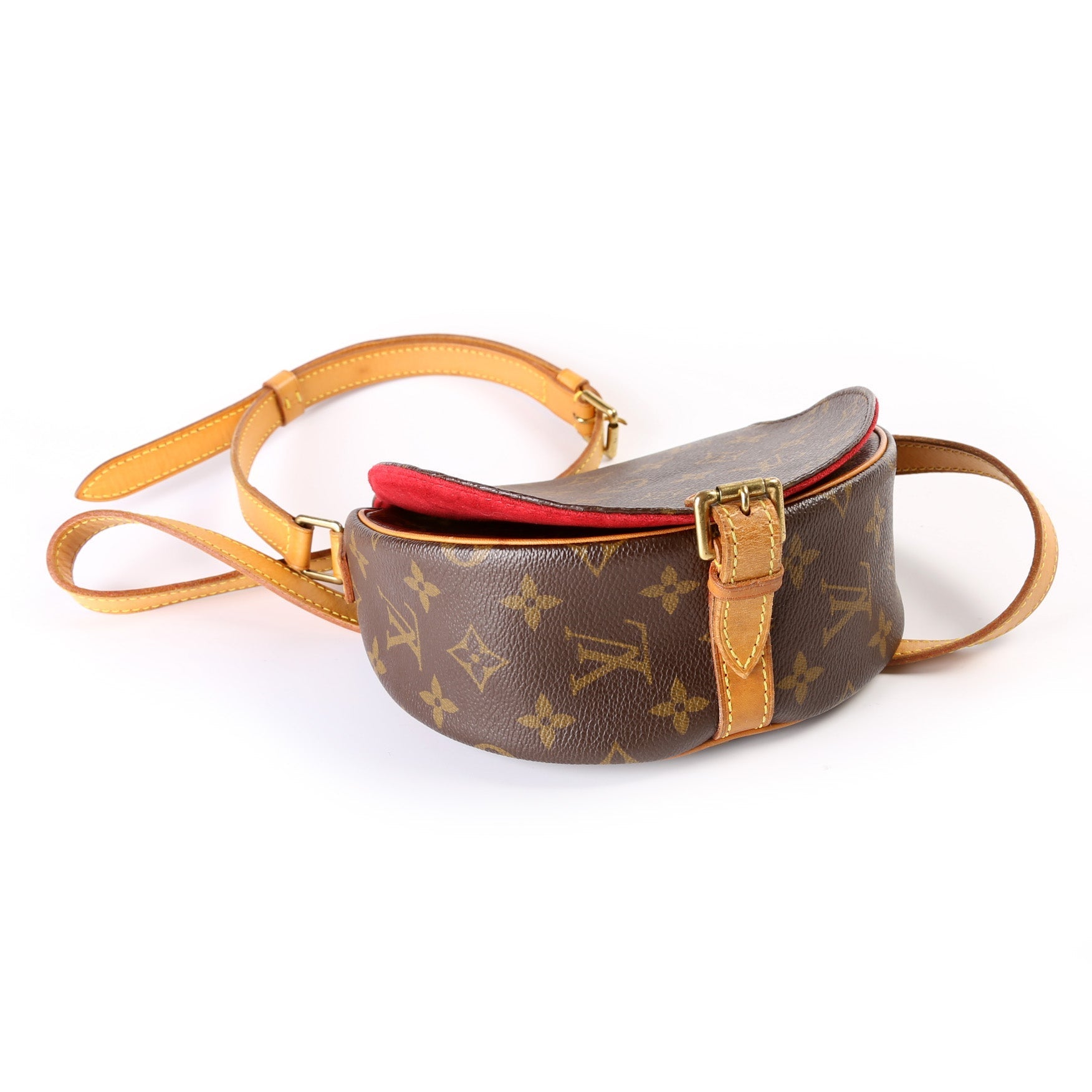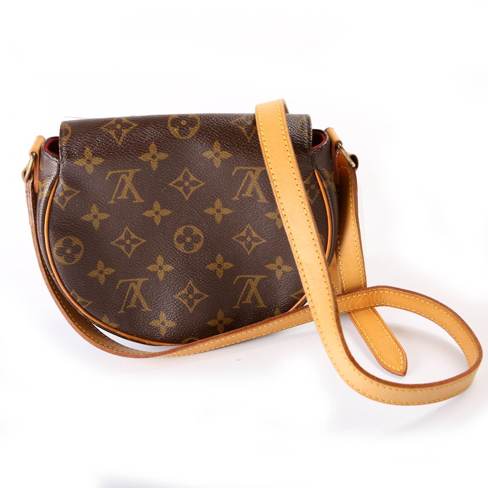 Louis Vuitton Tambourin Crossbody. The exterior is in the classic Louis Vuitton Monogram coated canvas.