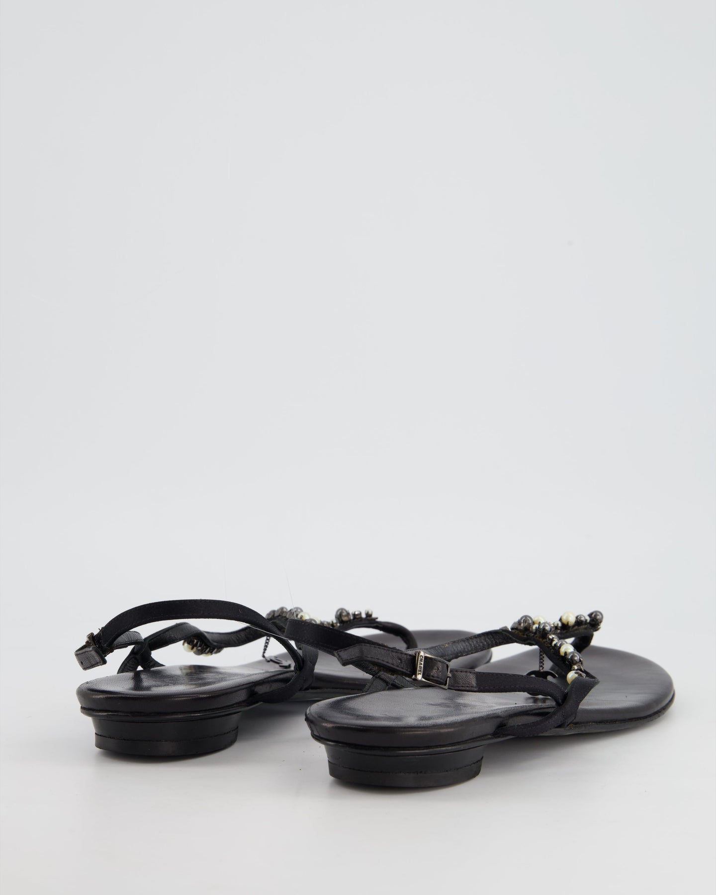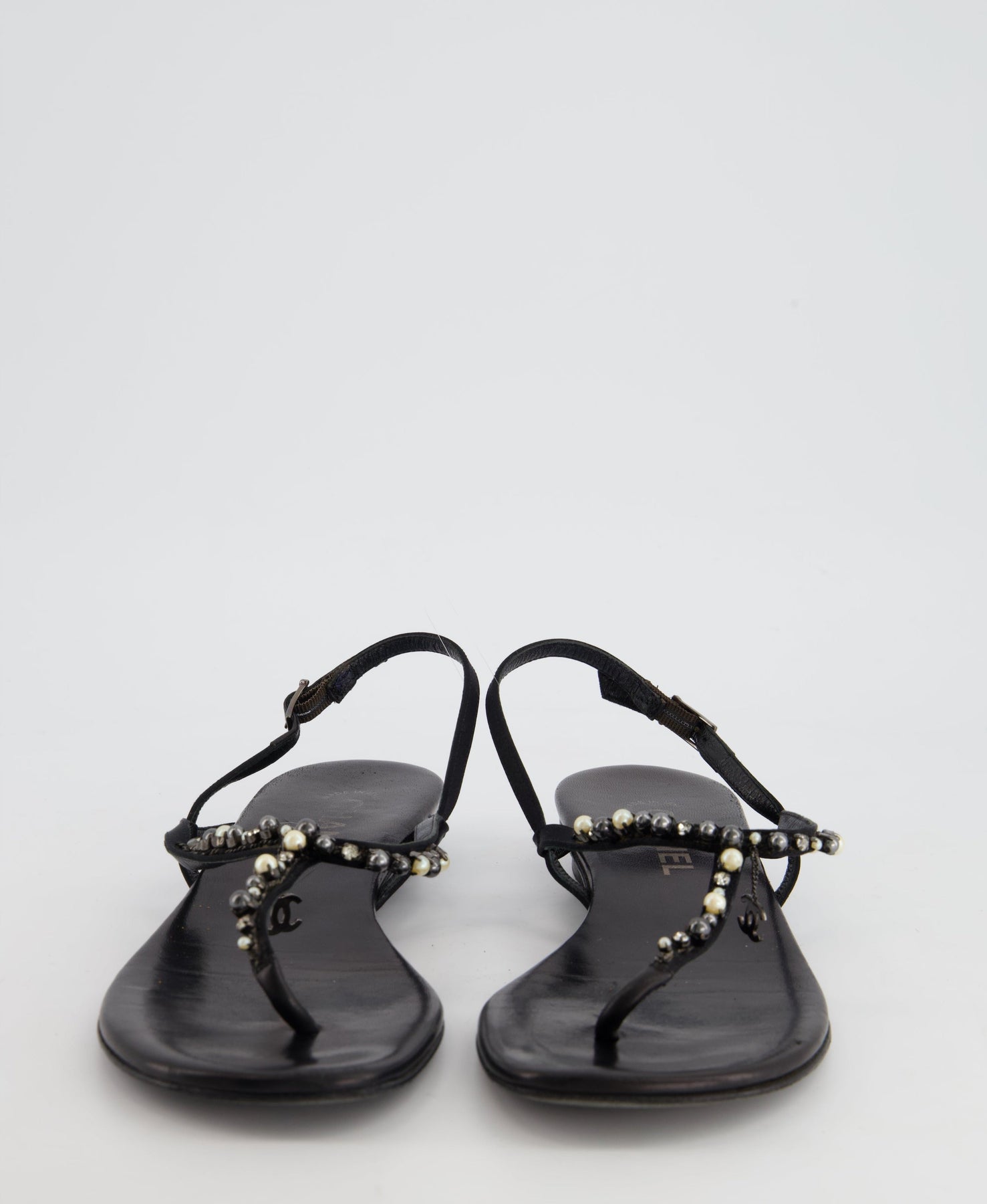 Chanel Black Embellished Leather Ankle Strap Sandals with CC charm detail Size EU 41