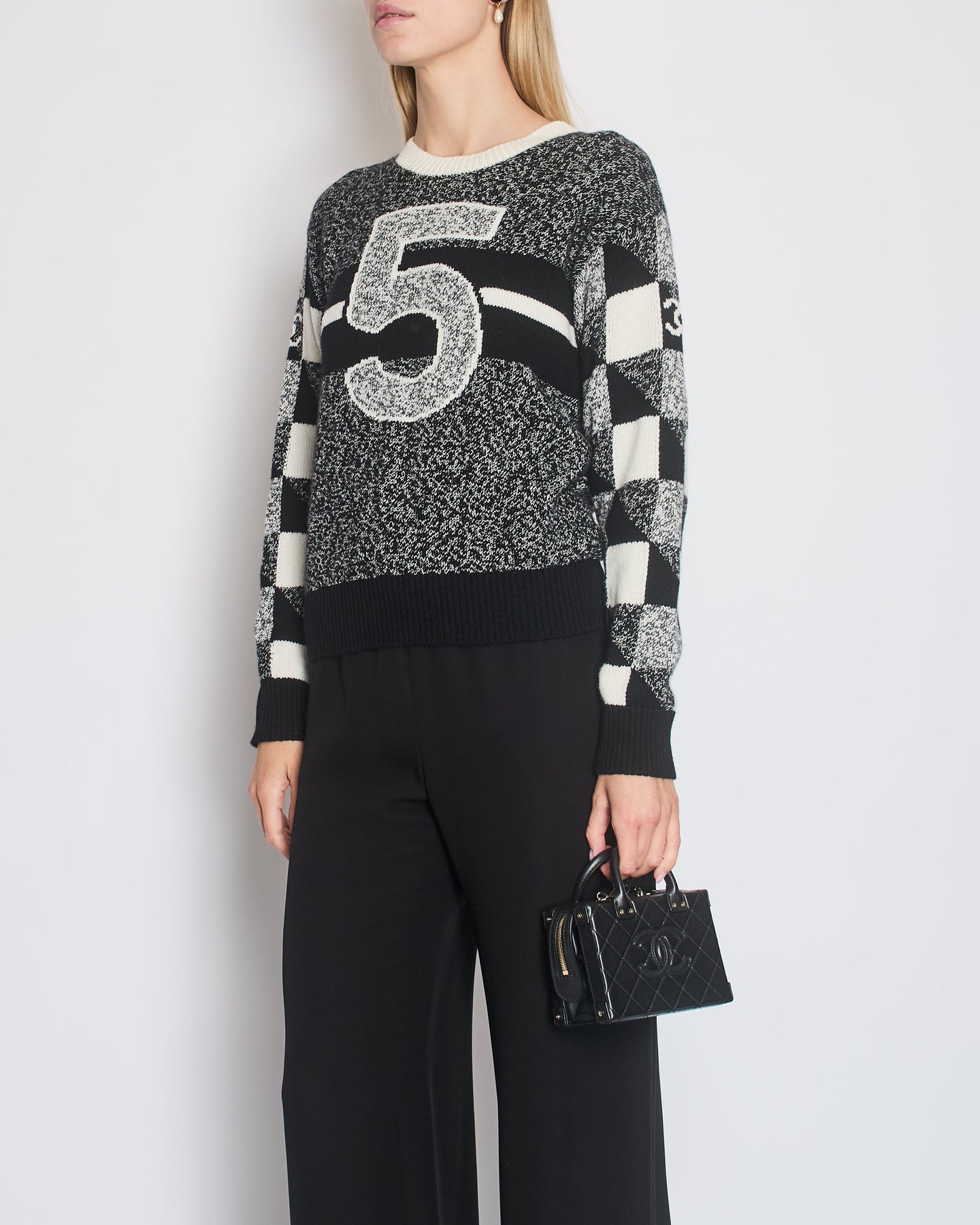 Top Quality Chanel Black No5 Round Neck Cashmere Jumper with CC Detail Size FR 38 (UK 10)