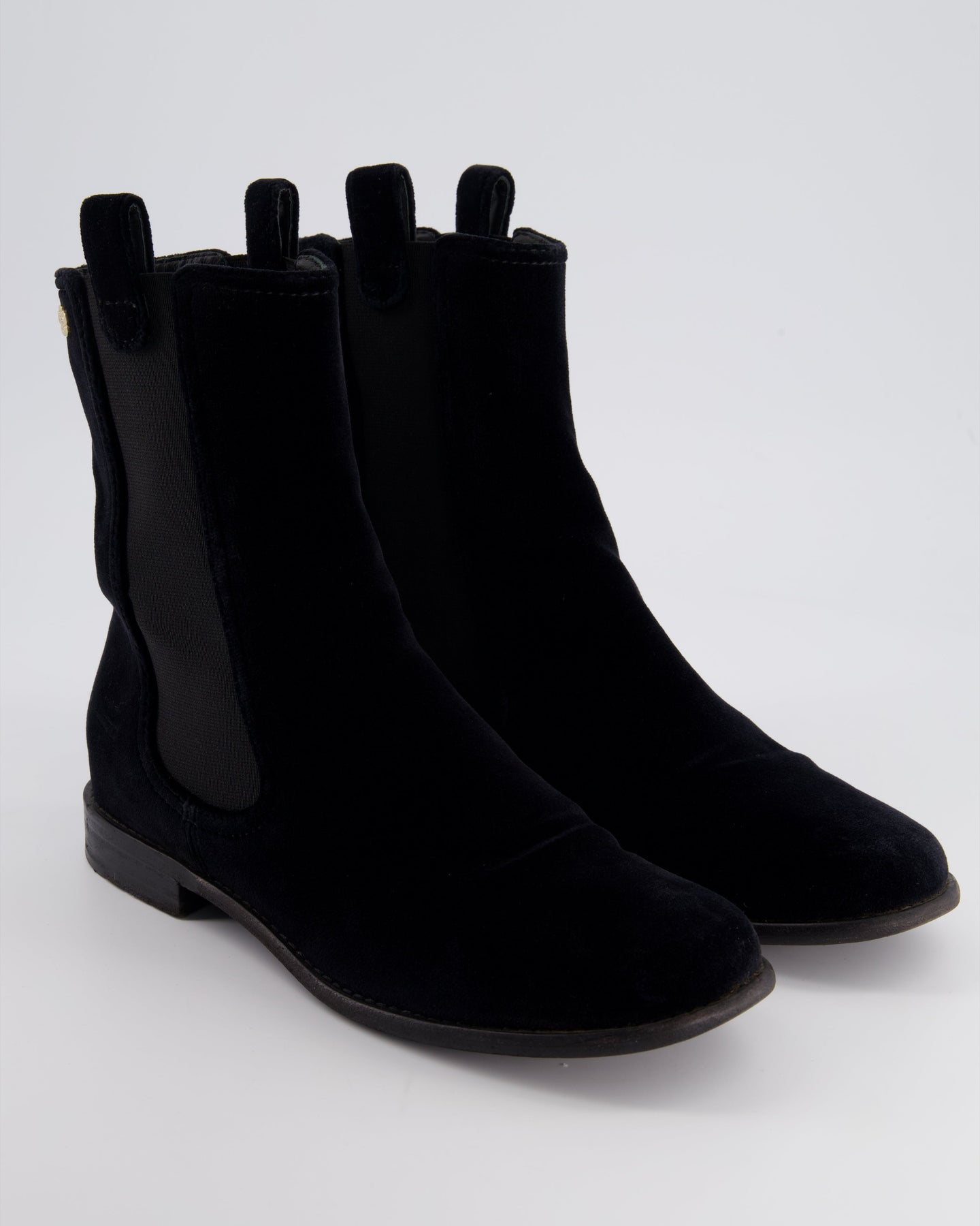 Chanel Black Velvet High Top Boots with Gold Camellia Detail Size EU 40.5