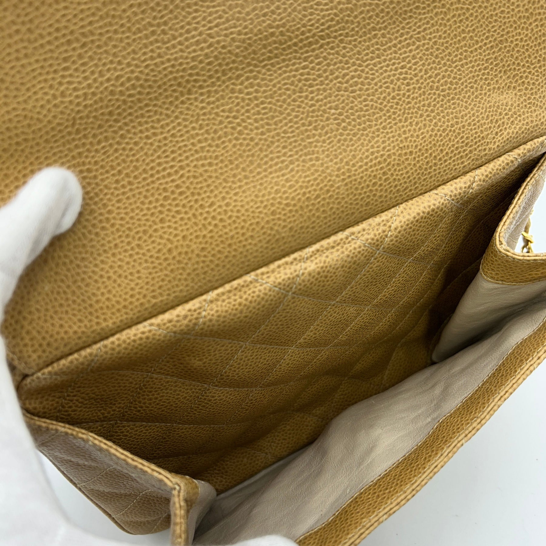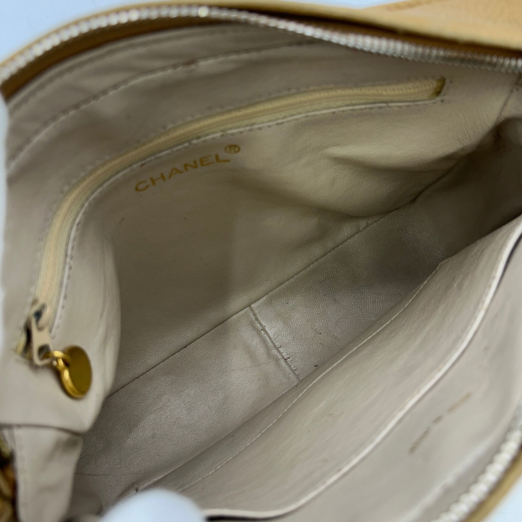 This luxurious CHANEL Cabian Skin Chevron Fringe Chain Shoulder Bag is a must-have for any fashionista who appreciates timeless elegance. Crafted from exquisite black caviar leather, this vintage Chanel masterpiece is designed with a chic quilted pattern and a vibrant red leather lining. The sophisticated twist lock closure and black and gold leather-chain strap elevate its design, creating an iconic look suitable for any occasion. Whether you're a lover of vintage Chanel bags or searching for an exquisite piece among used designer handbags, this Chanel shoulder bag is sure to impress.
