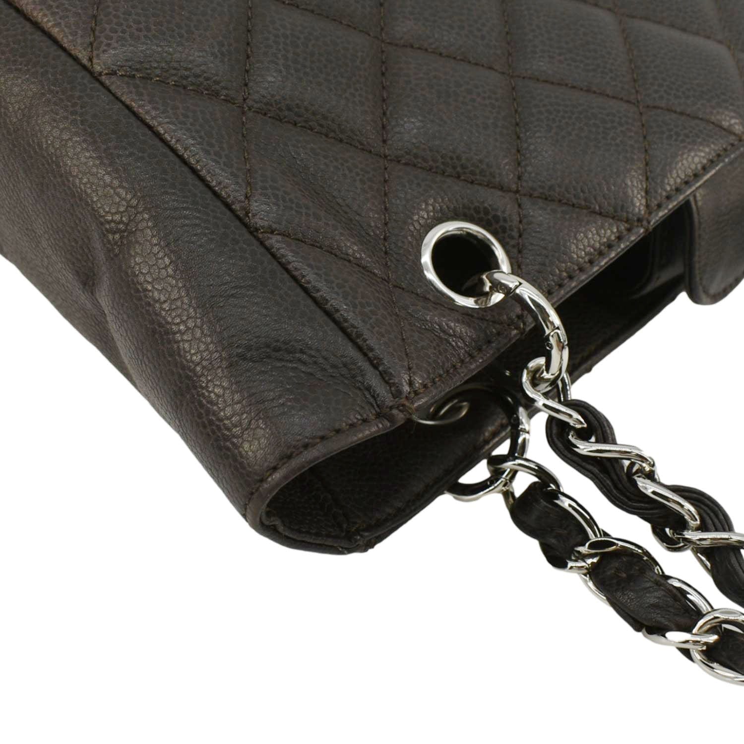 The Chanel Petite Shopping Tote in Dark Brown quilted caviar leather is a timeless and elegant bag. Featuring the iconic CC logo, durable caviar leather, and chain-link shoulder straps, it offers both sophistication and practicality, making it ideal for day-to-day use.