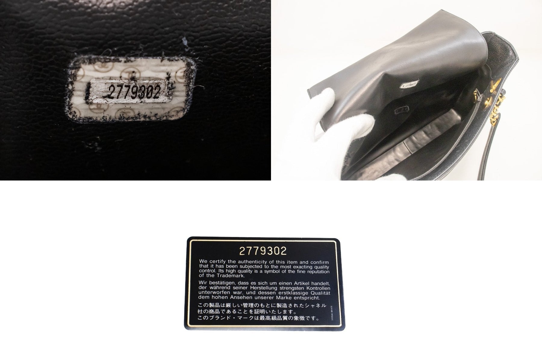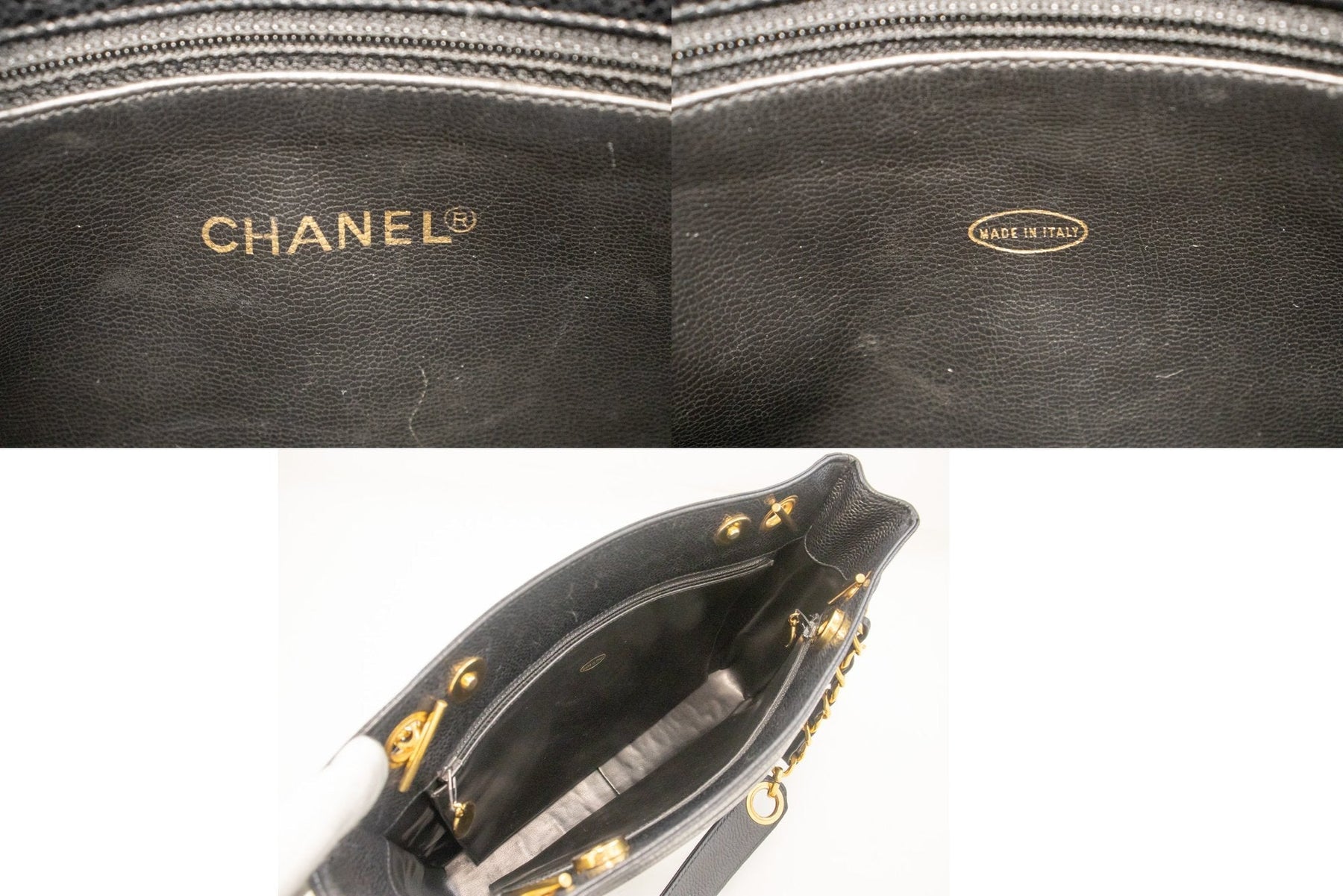 An CHANEL Caviar Triple Coco Chain Shoulder Bag Black Leather Gold.