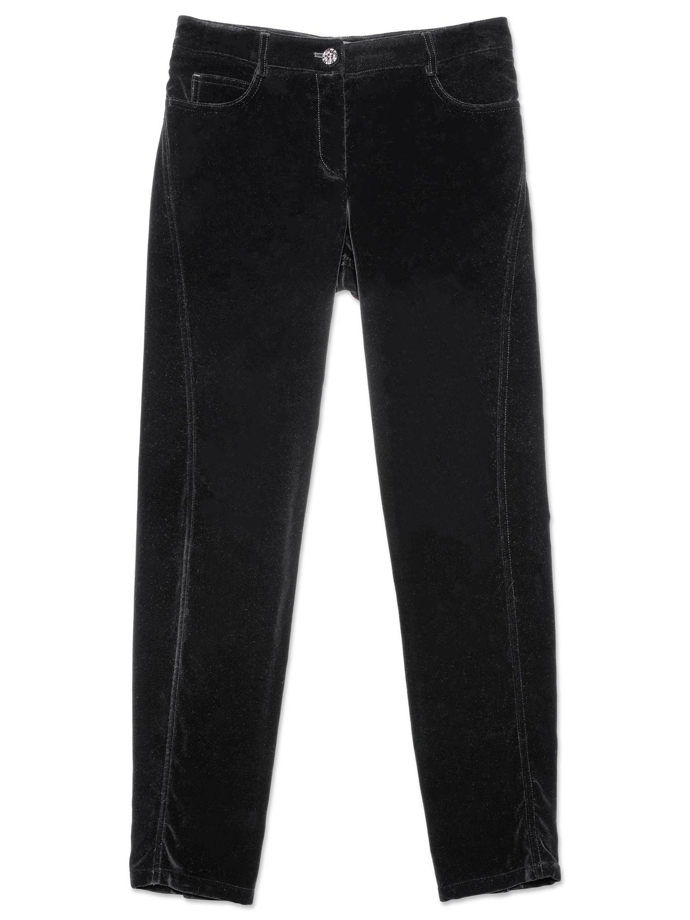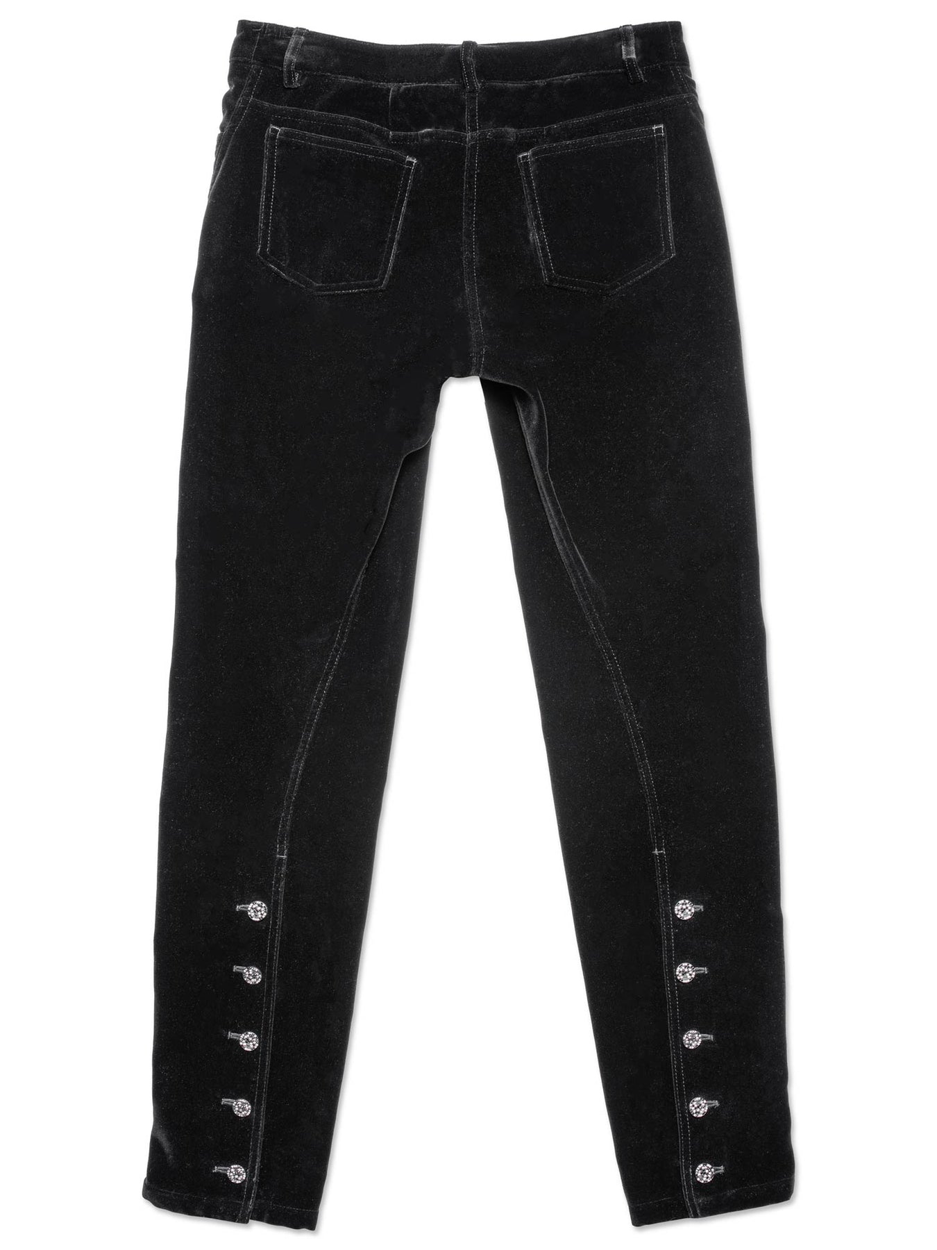 Chanel Velvet Pants or . These Chanel pants feature CC Logo rhinestone buttons going down the legs, two back pockets and a belt loops.