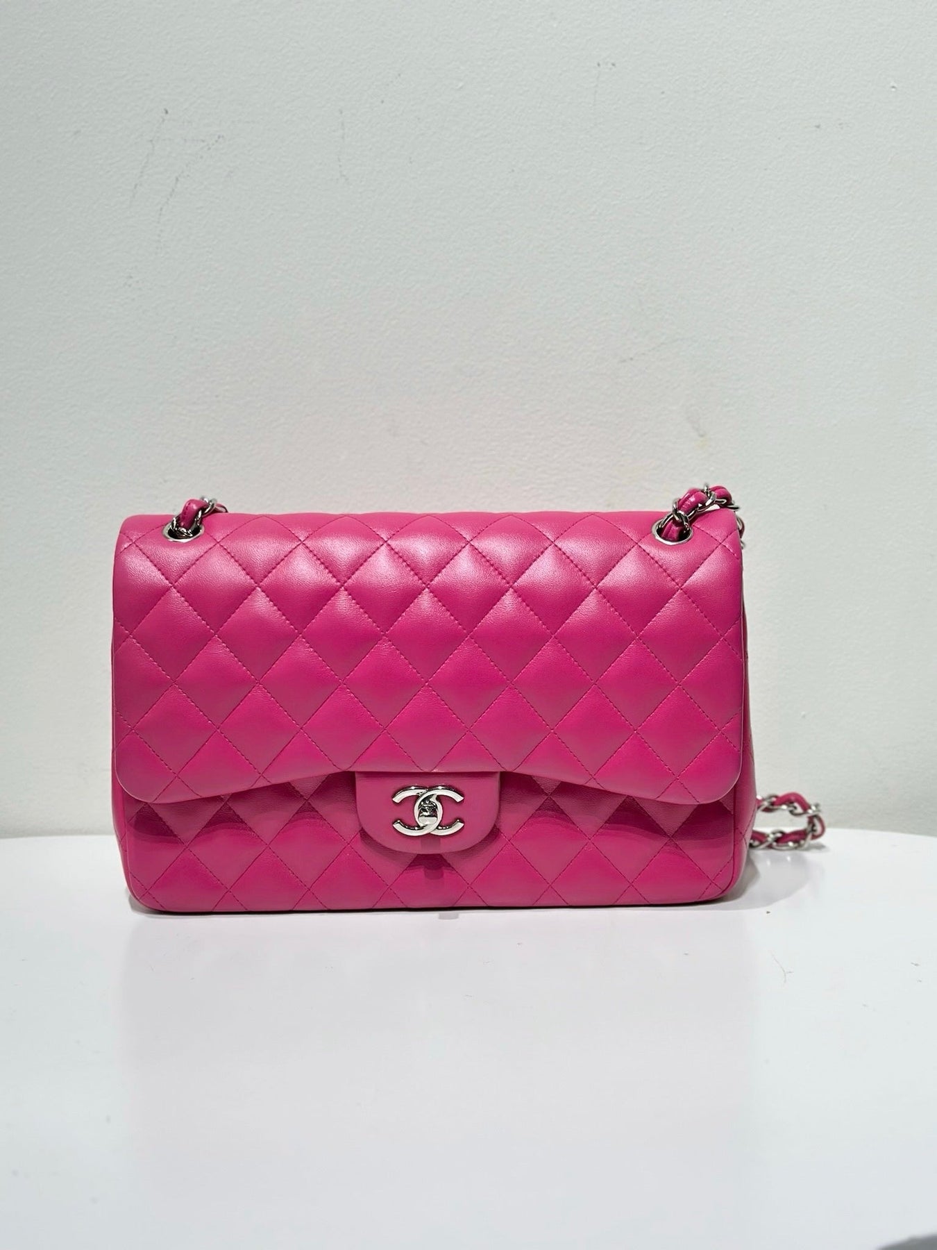 This Chanel CF Flap Jumbo 19series Shoulder Bag is the epitome of chic elegance, perfect for the discerning fashionista who appreciates vintage Chanel bags. Crafted from luxurious pink quilted leather, it boasts iconic silver-tone hardware and a versatile strap that can be worn on the shoulder or crossbody. The interior is lined in matching pink leather, offering ample space for essentials. A timeless addition to any collection, this piece is a standout among used designer handbags.