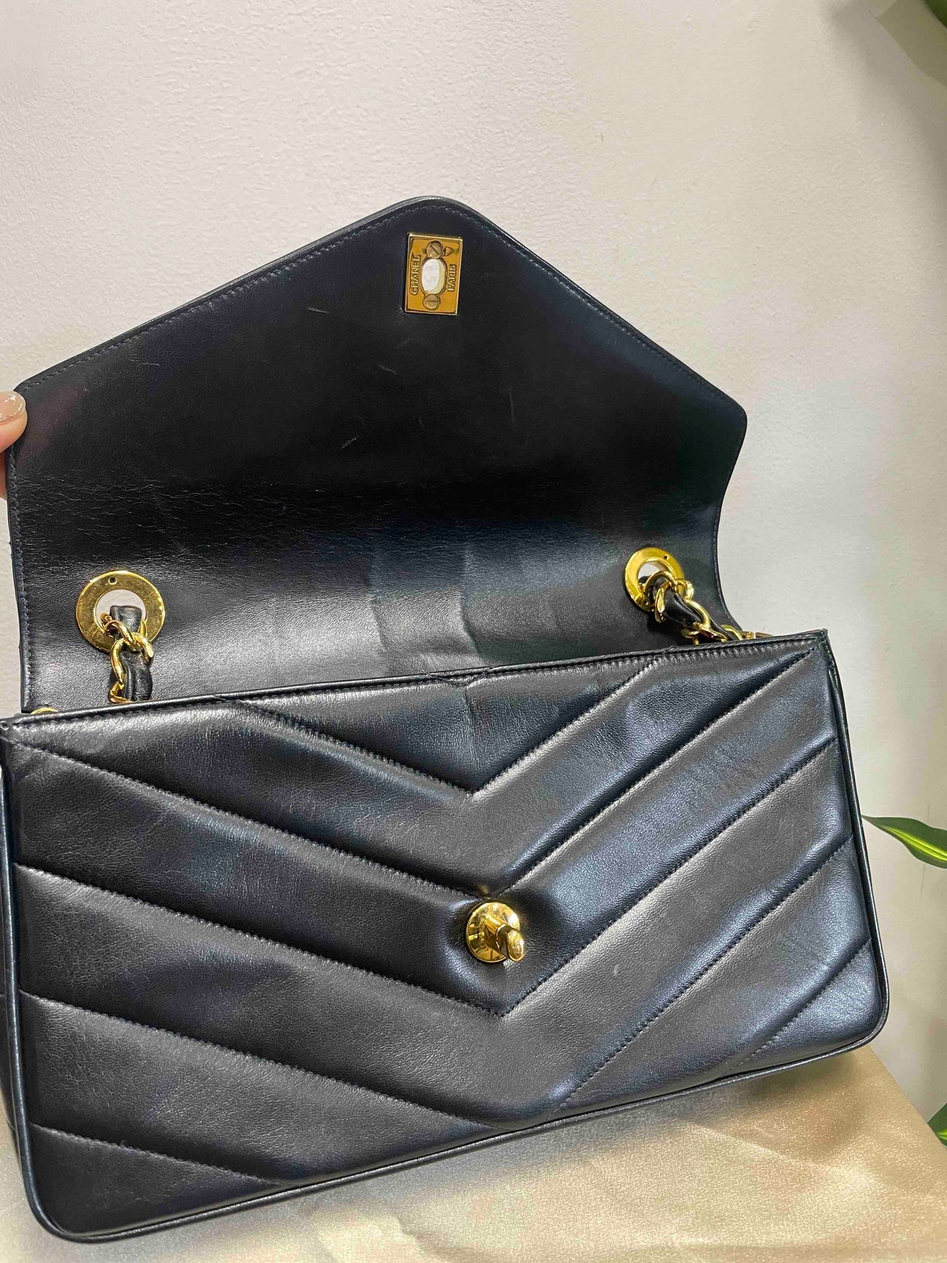 This used Chanel ChainBag Classic Shoulder Bag is perfect for enthusiasts of vintage Chanel bags. The elegant silhouette is crafted from premium black leather, highlighted with a gold chain strap. Inside, it features a sleek leather interior providing ample storage. Whether you’re a collector or a lover of used designer handbags, this piece is a coveted find.