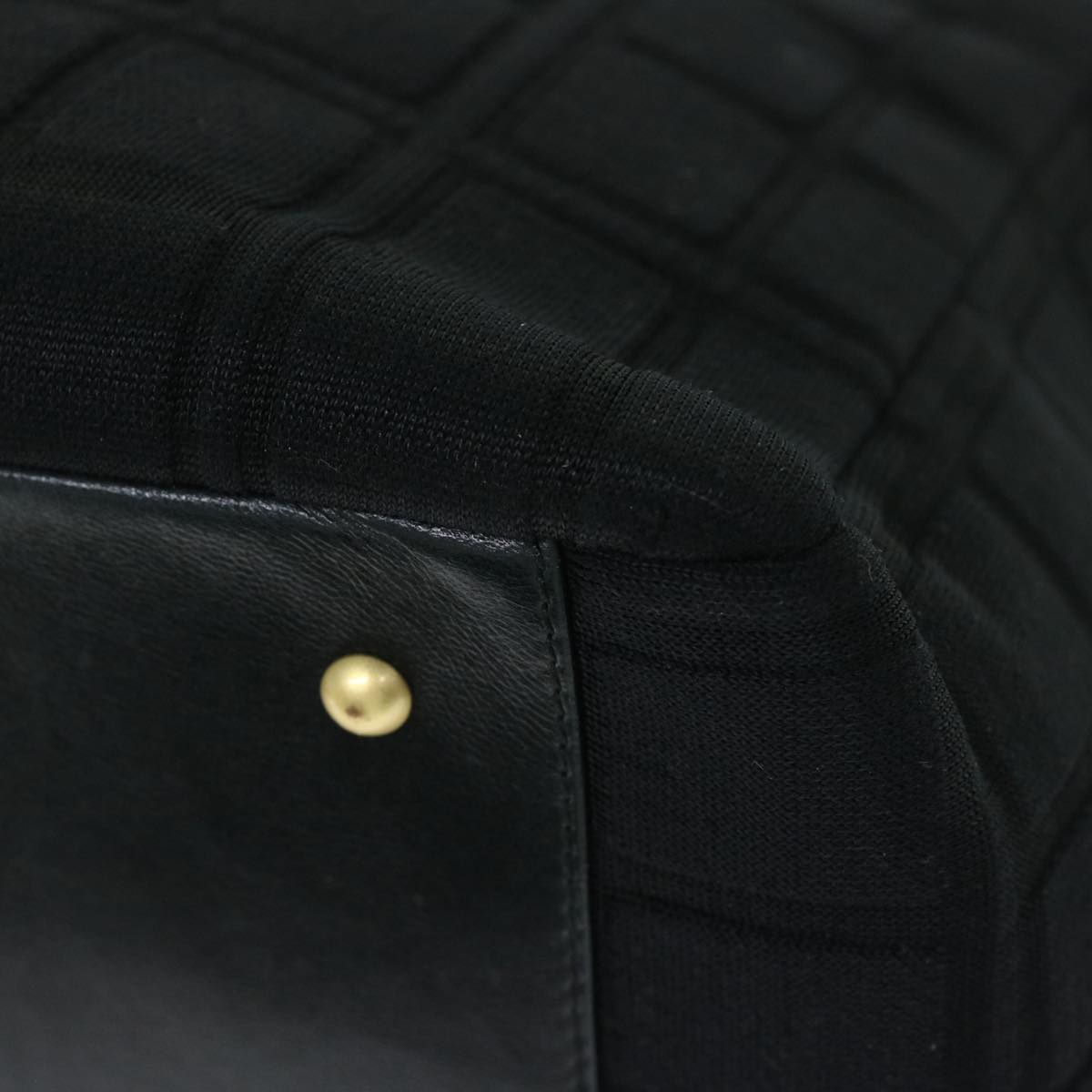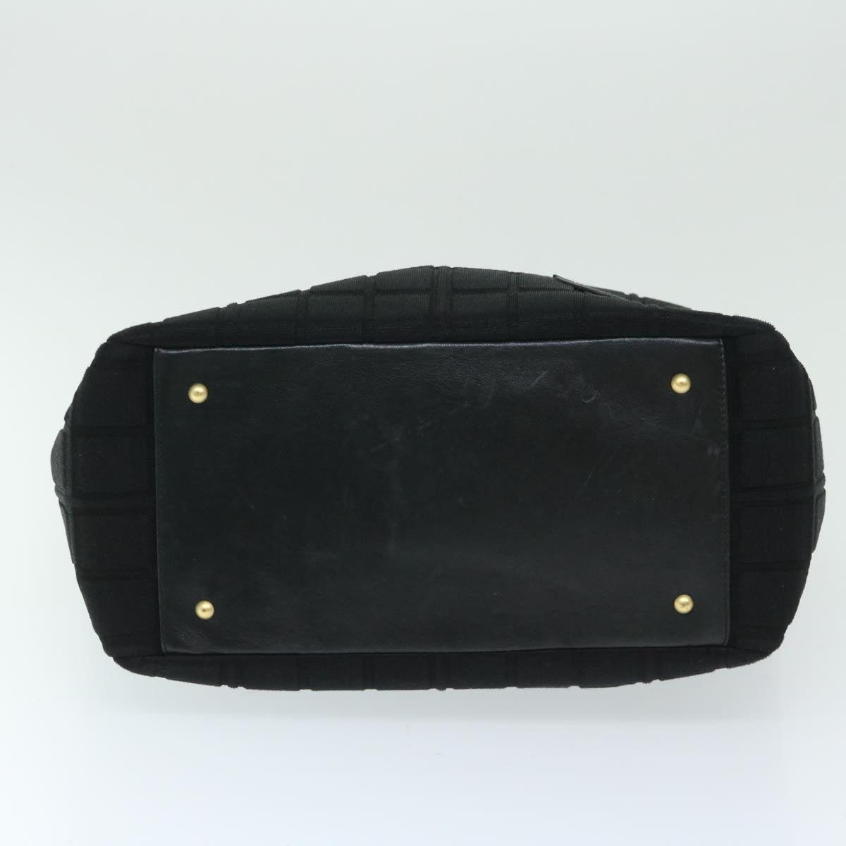 CHANEL Choco Bar Chain Hand Bag Cotton Black CC Auth bs12465