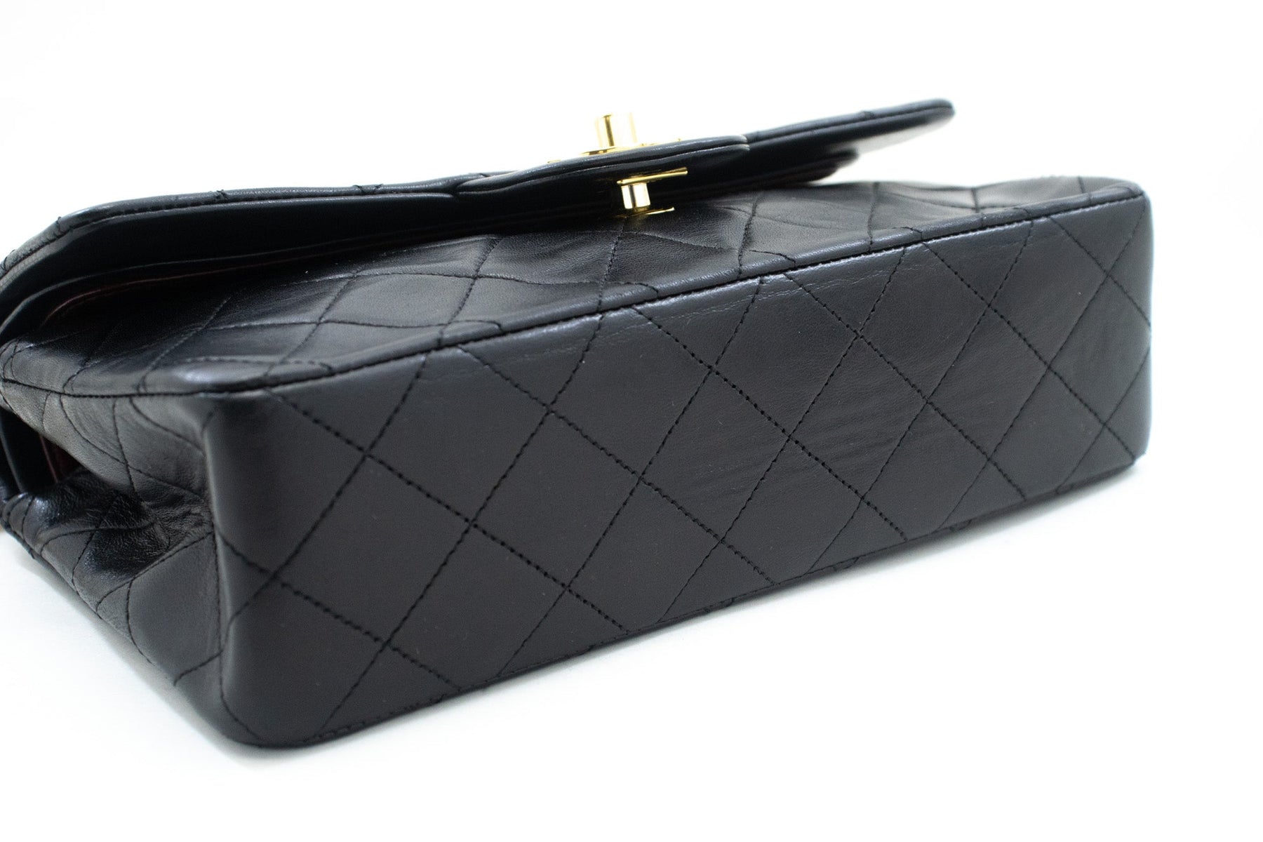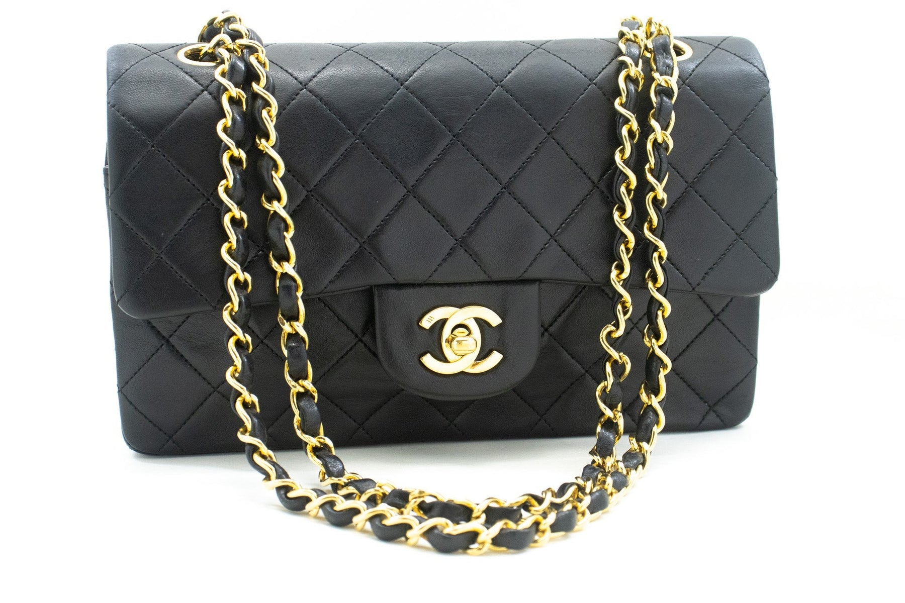 An CHANEL Classic Double New 9" Chain Shoulder Bag Black made of black Lambskin.