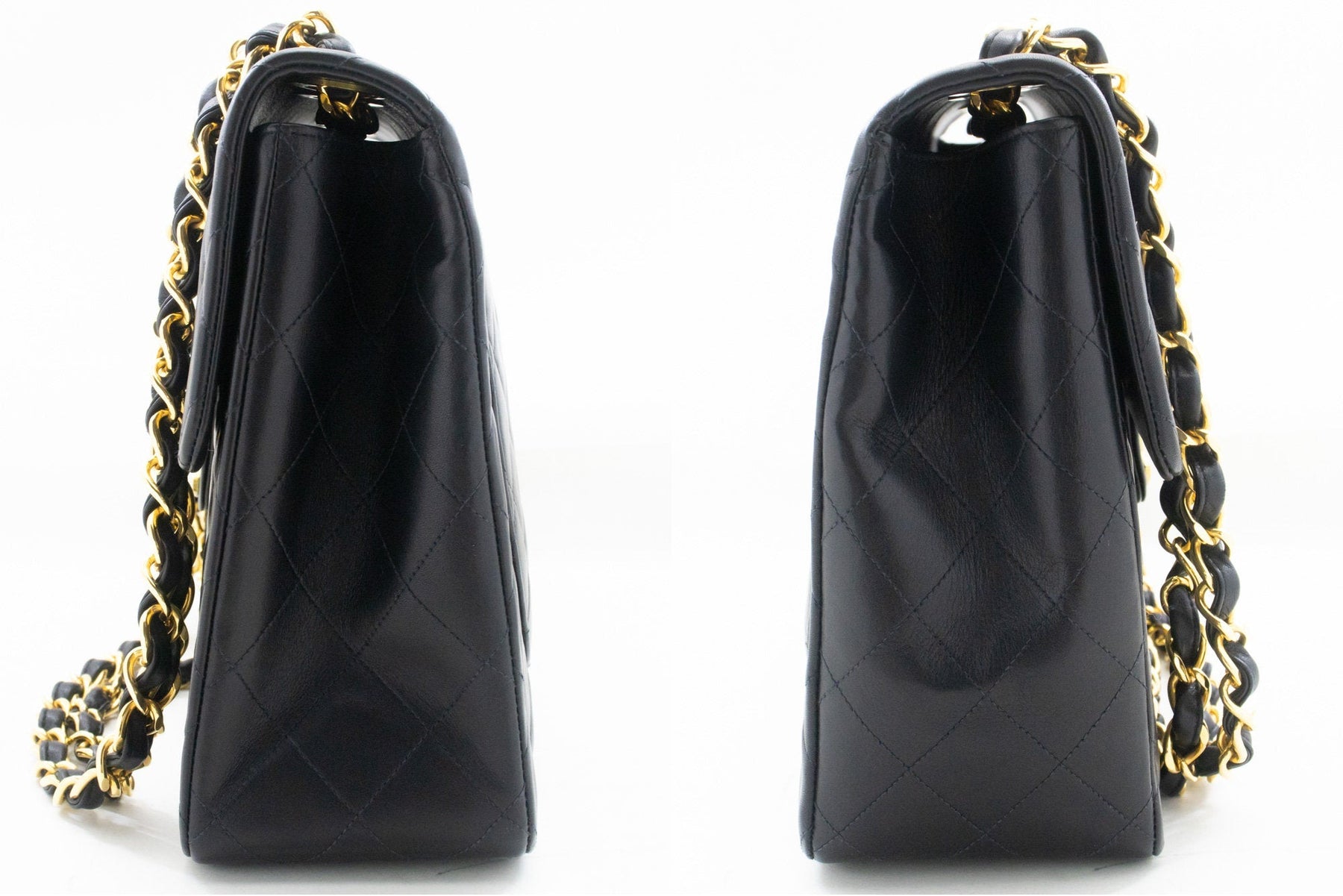 An CHANEL Classic Large 13" New Chain Shoulder Bag Black made of black Lambskin.