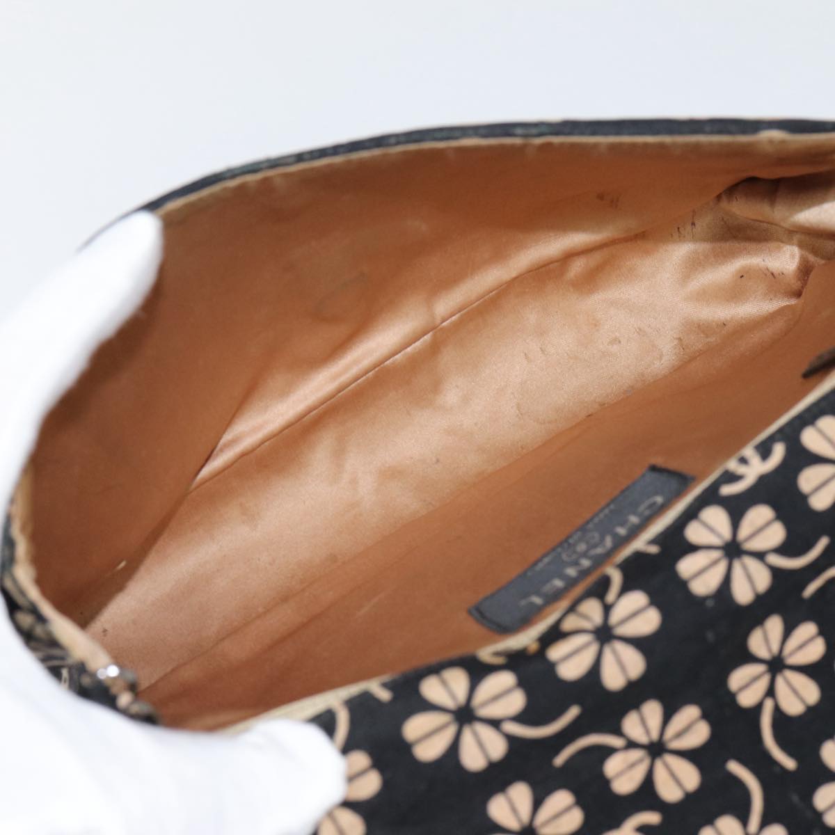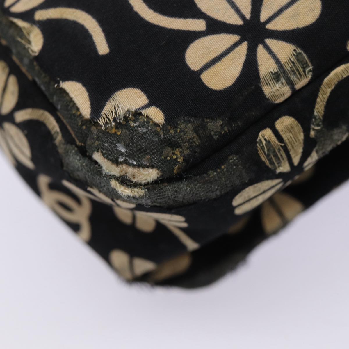 CHANEL Clover Turn Lock Chain Shoulder Bag Canvas Black Silver CC Auth bs16983