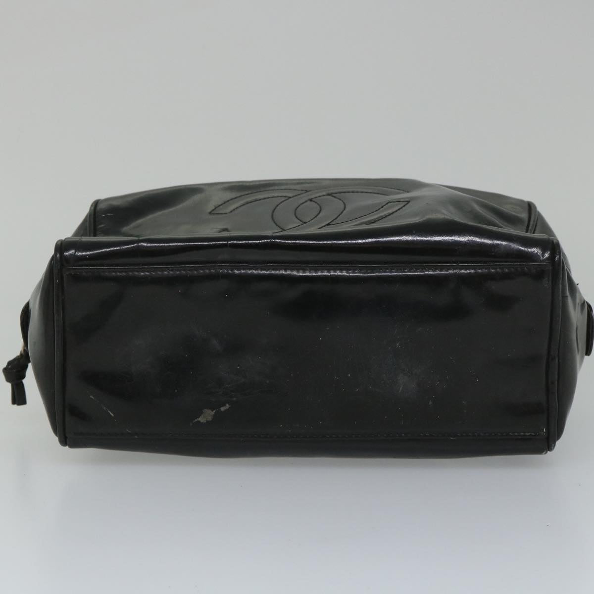 CHANEL Clutch Bag Patent leather Black CC Auth bs9031