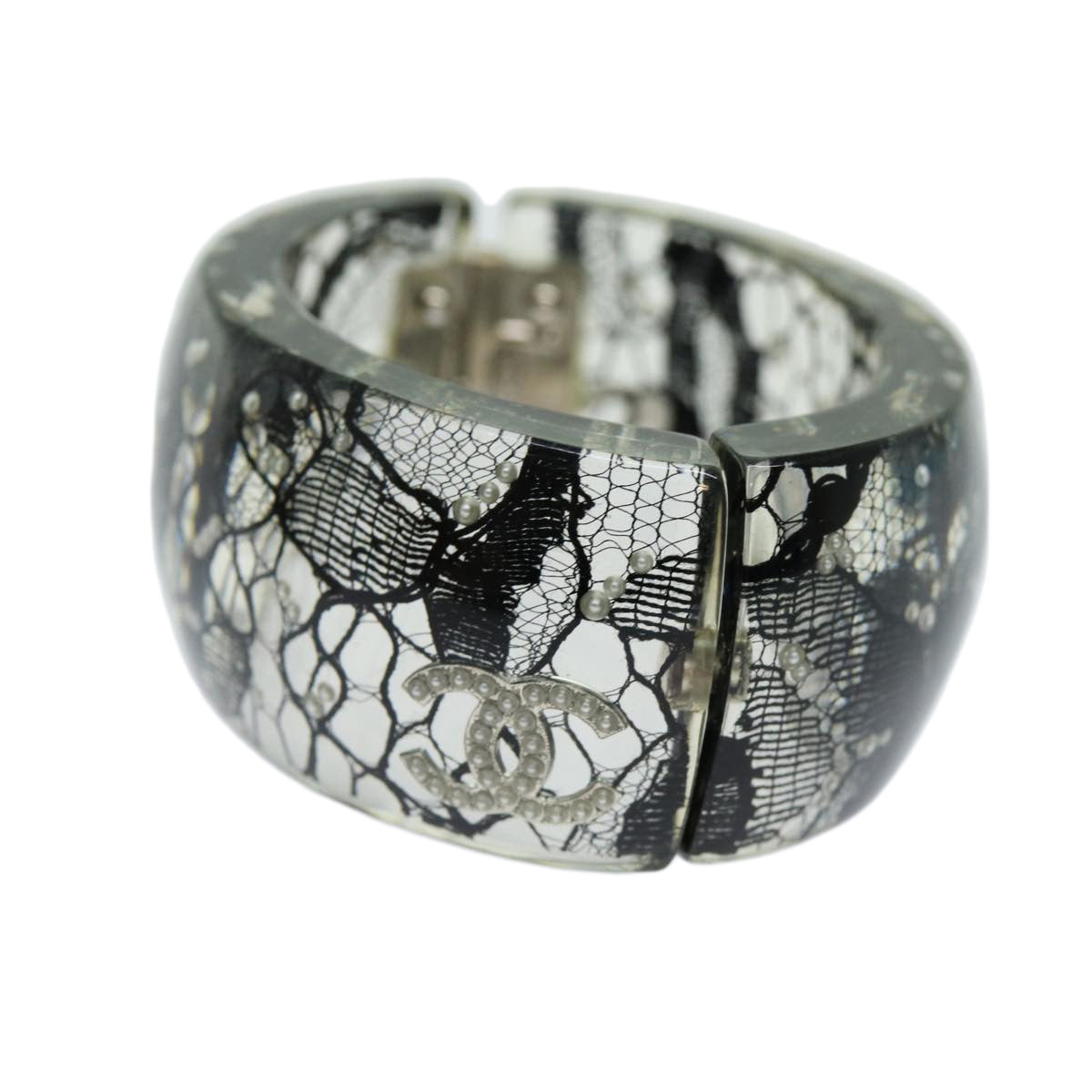 CHANEL COCO Mark Bracelet Black CC Auth am6015