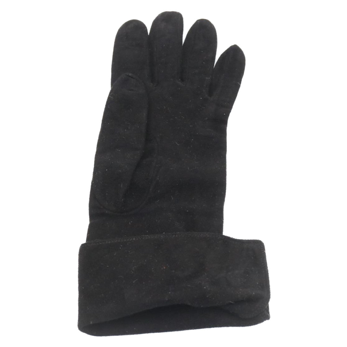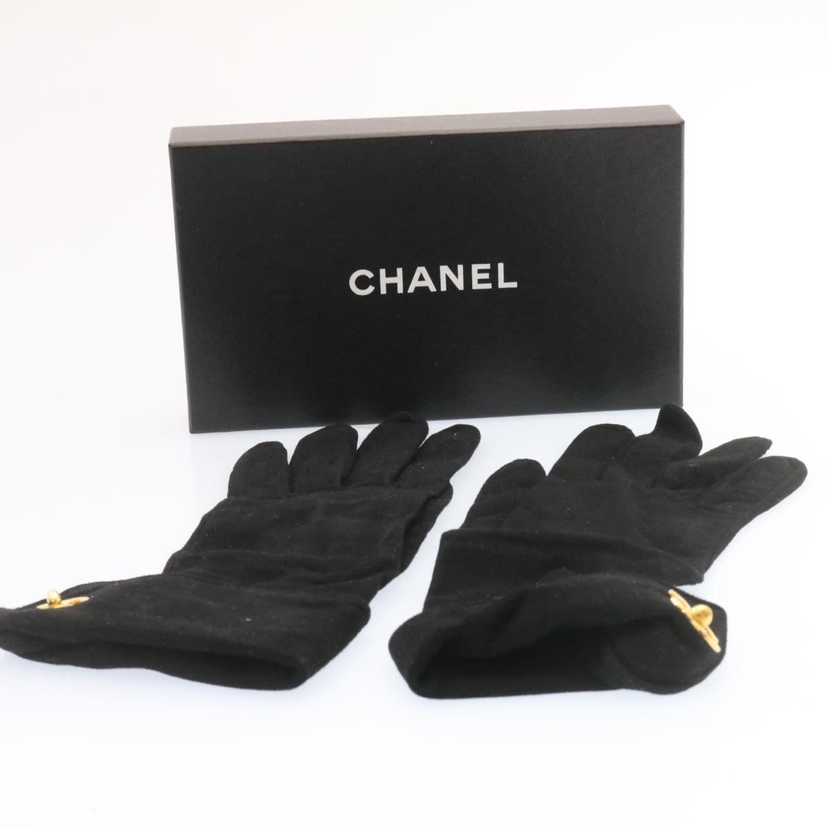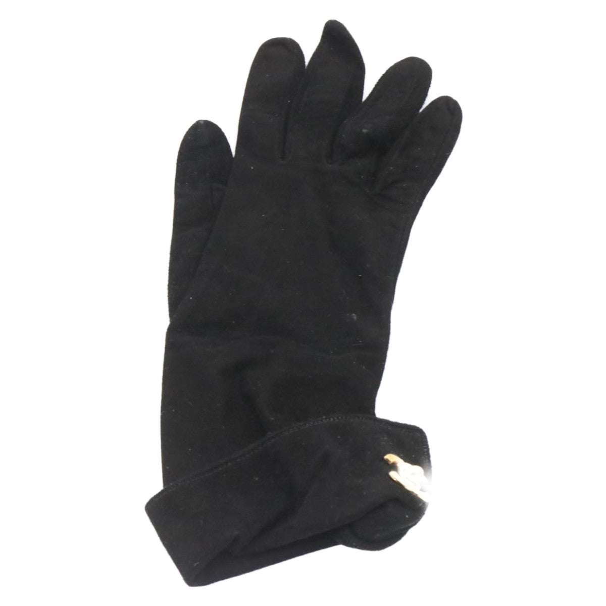 CHANEL COCO Mark Gloves Suede Black Gold CC Auth am2319sA