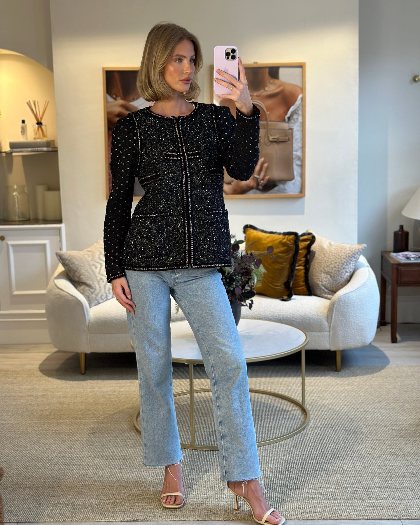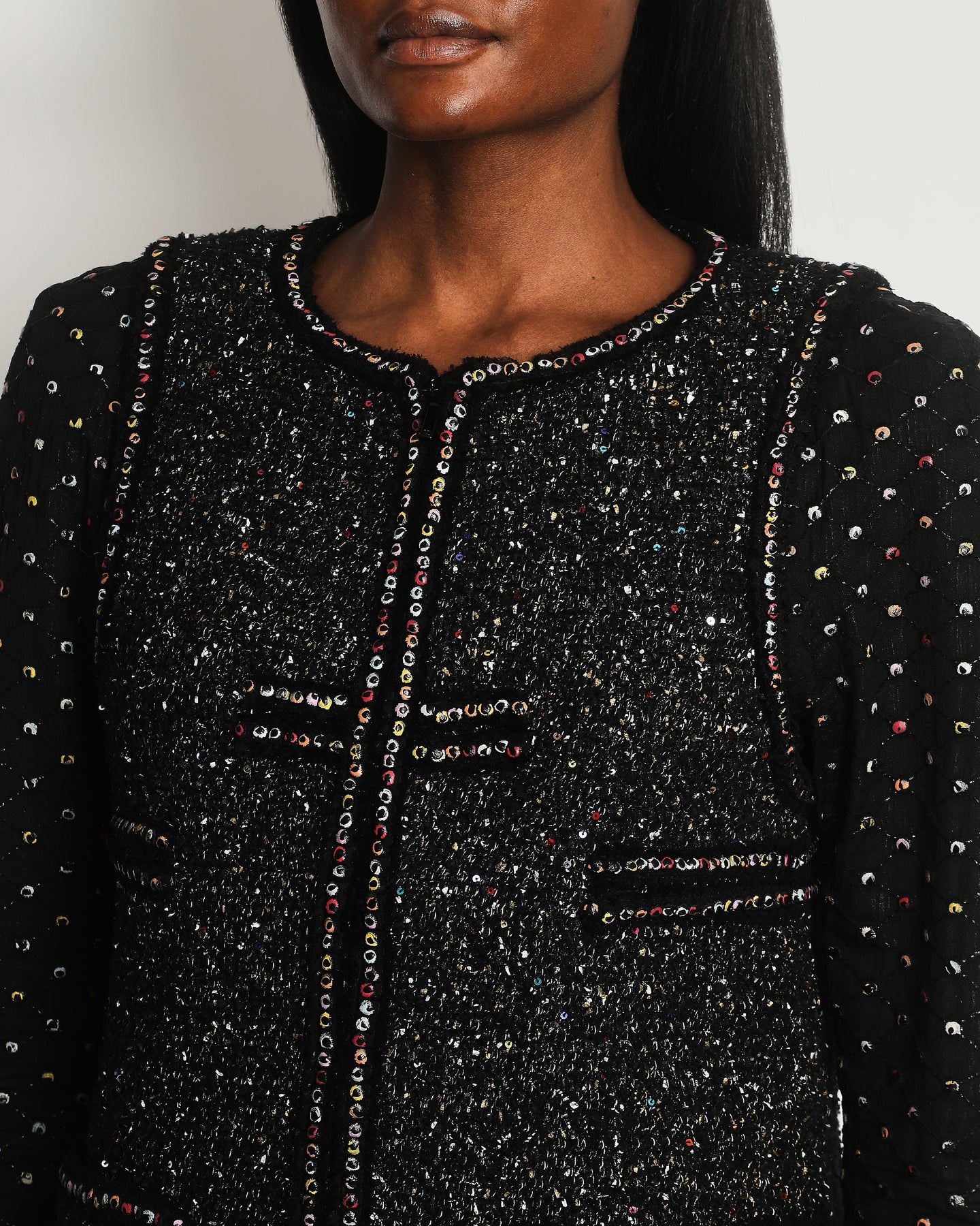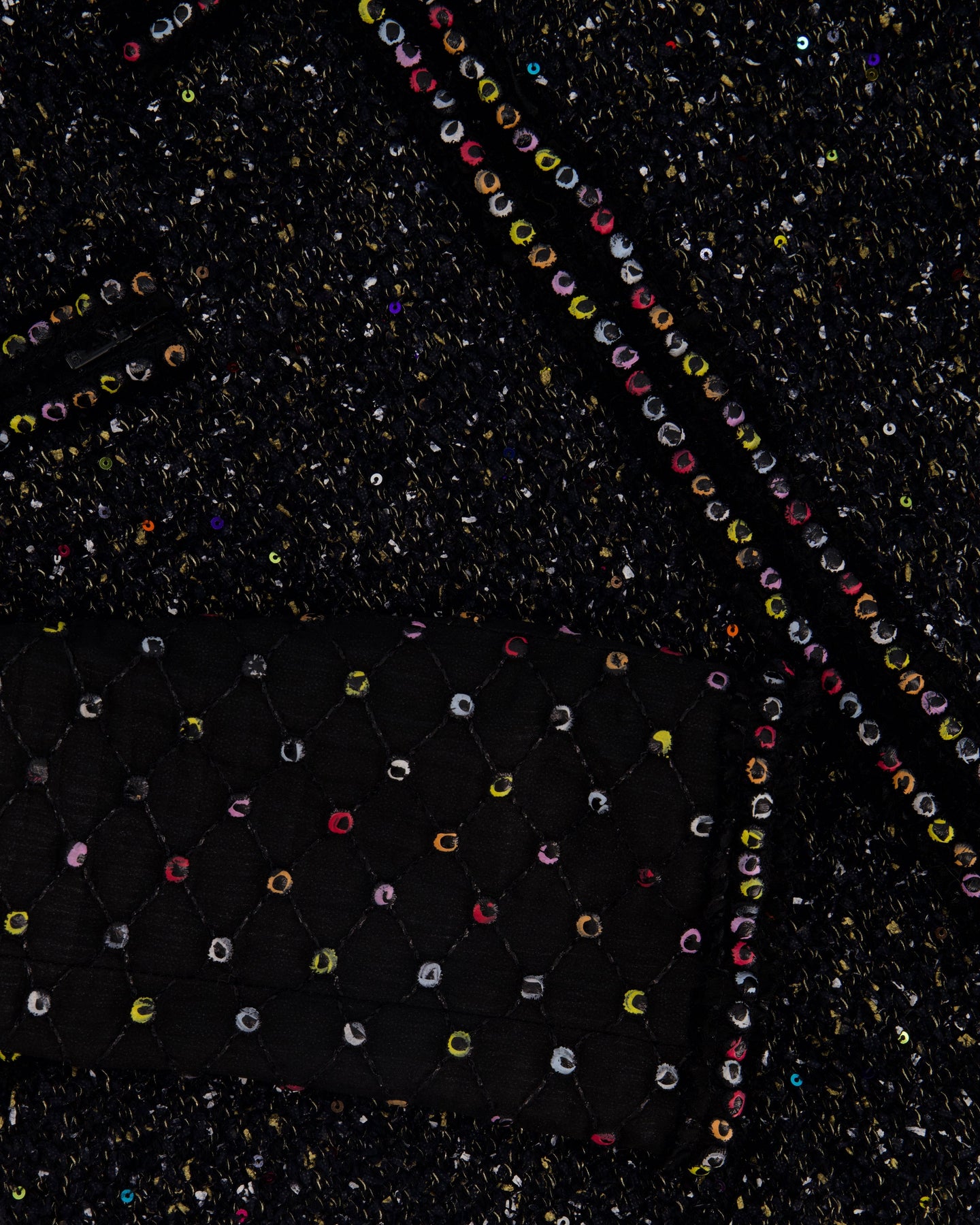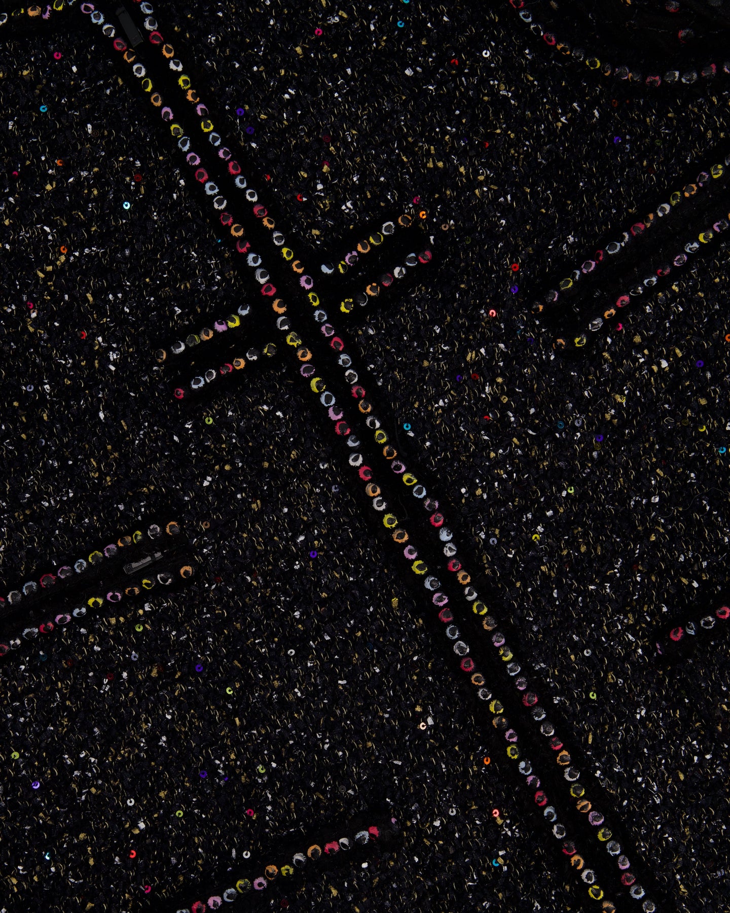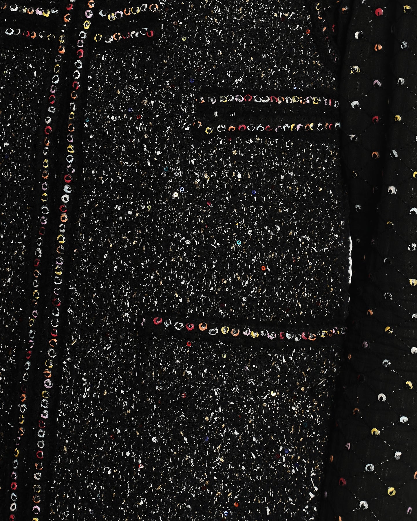 Chanel Fall 2017 Black Tweed Jacket with Multicoloured Sequin Details Size FR 42 (UK 14)