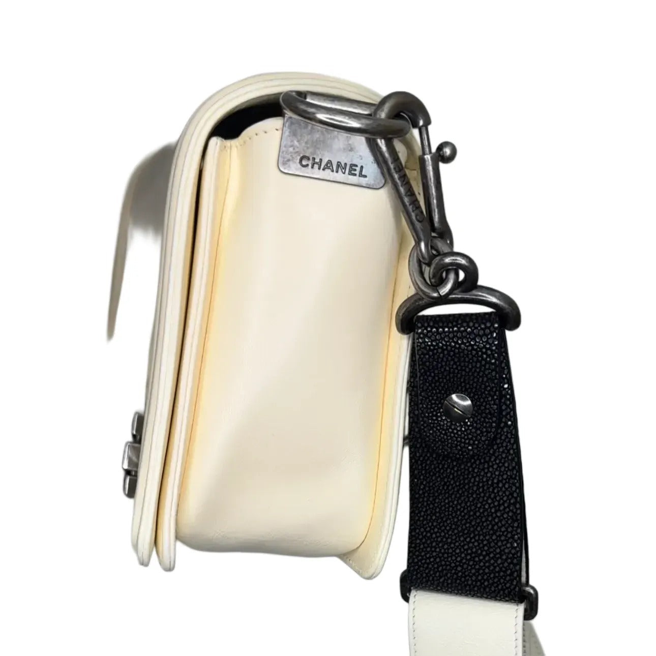 Handle/Strap Color Black and Silver | Handle/Strap Material Leather and Chain |