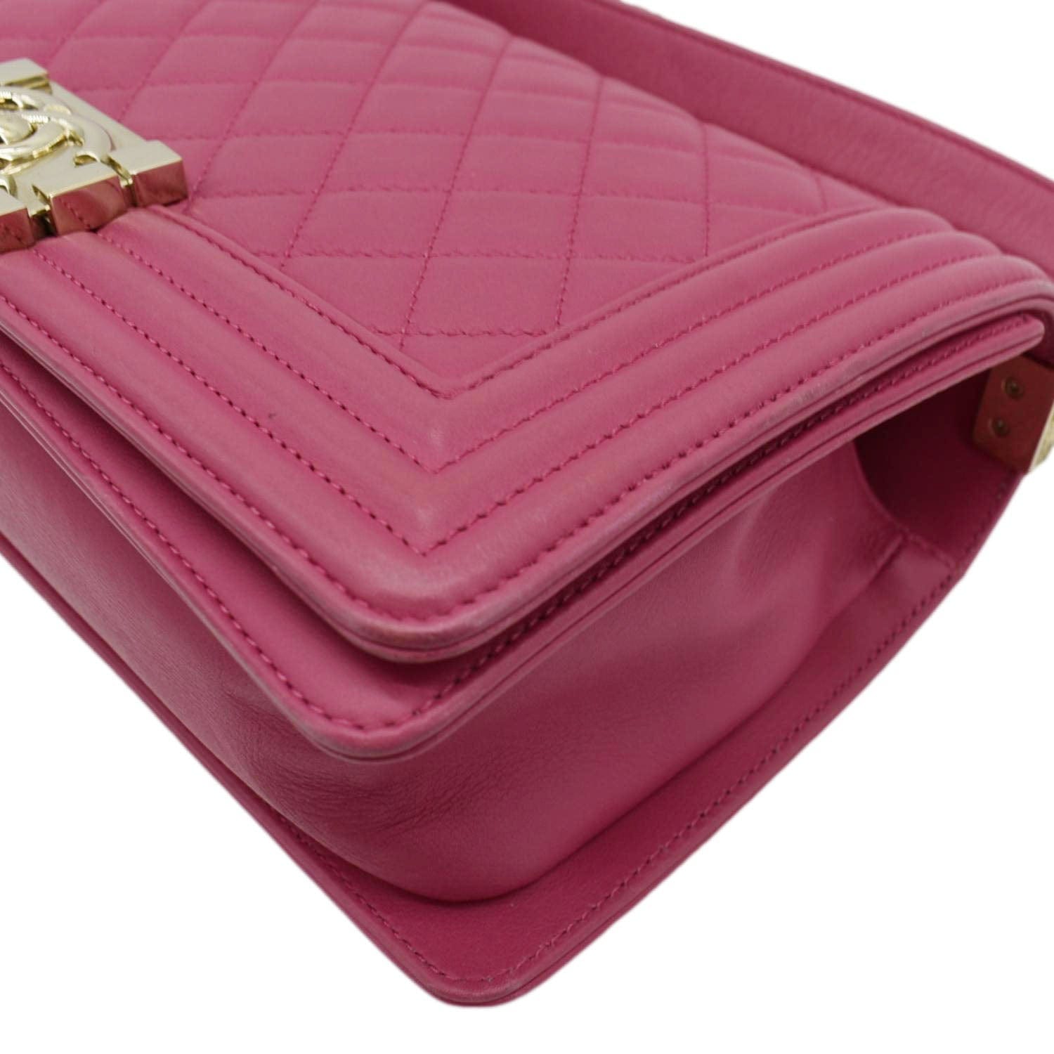 The CHANEL Medium Boy Flap Quilted Leather Shoulder Bag in Pink features a chic, quilted design with luxurious leather. This elegant shoulder bag combines classic sophistication with modern style, perfect for any fashion-forward wardrobe.