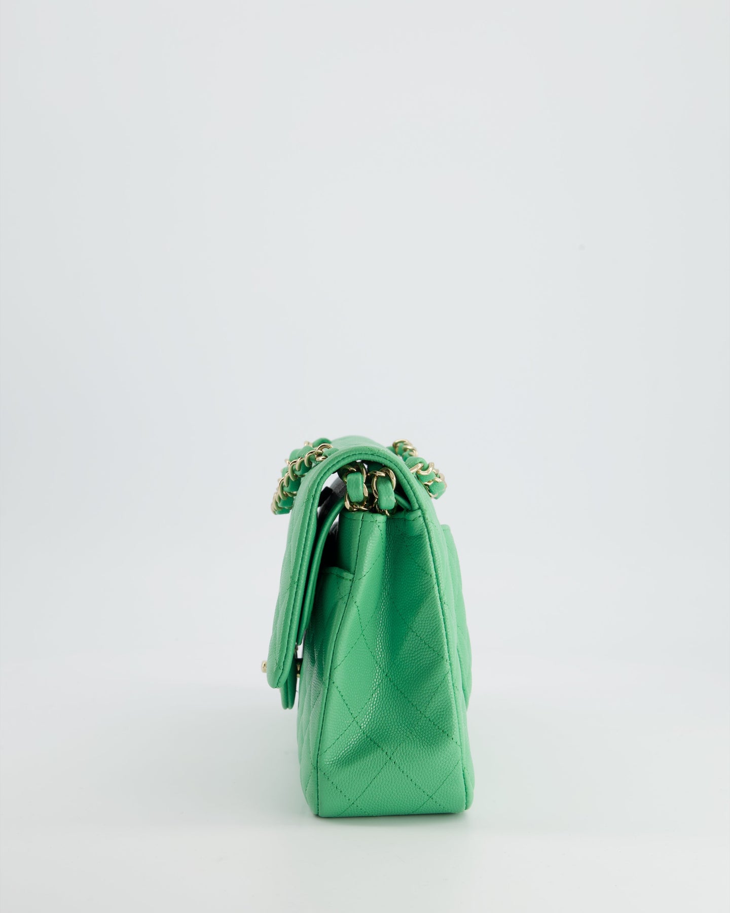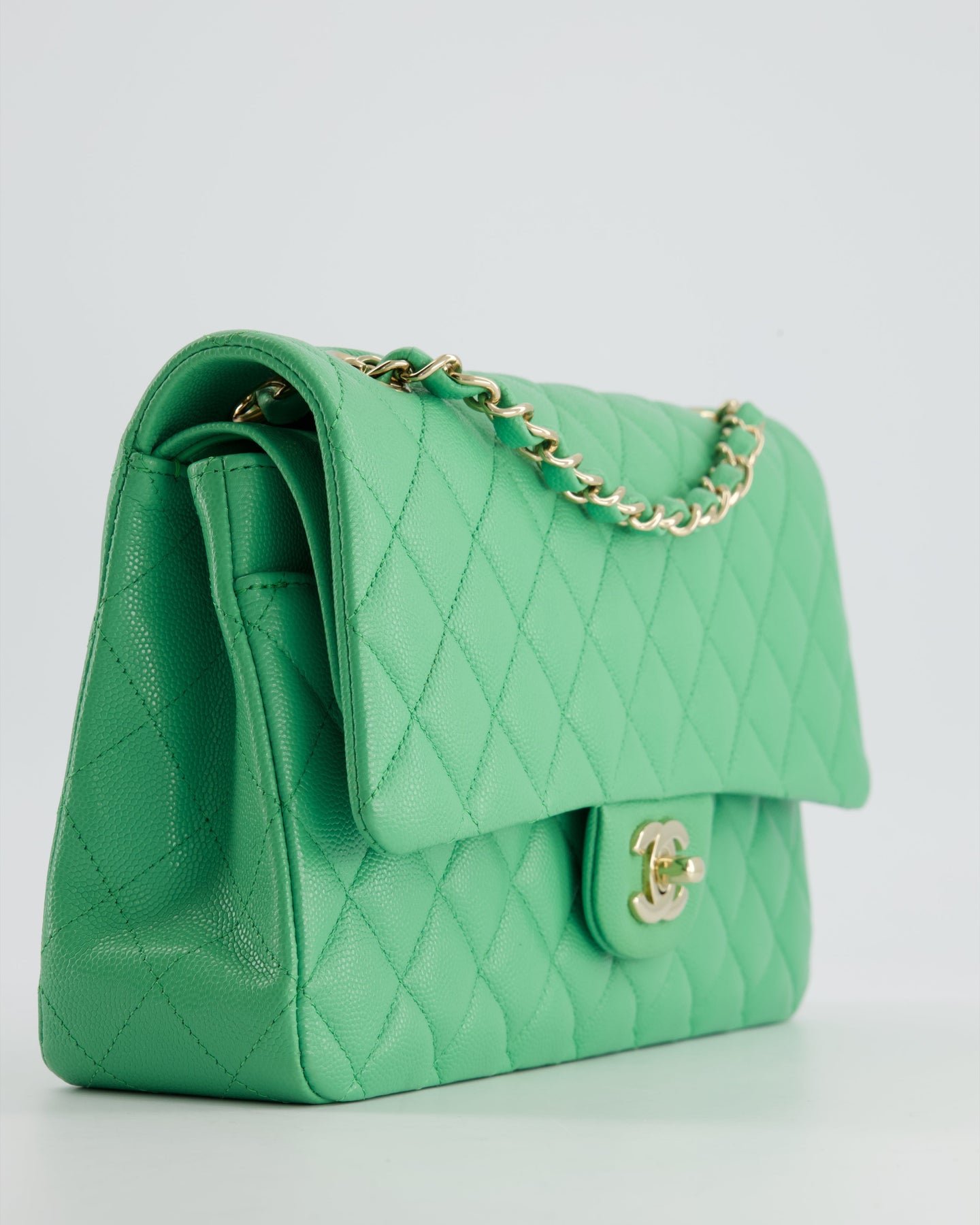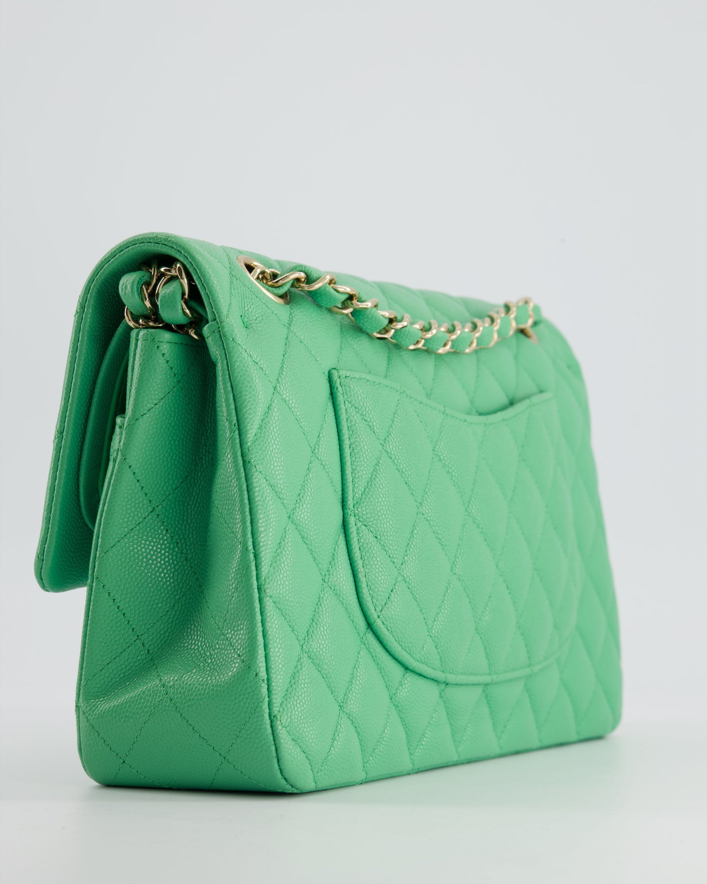 Chanel Mint Green Medium Classic Double Flap in Caviar Leather with Champagne Gold Hardware