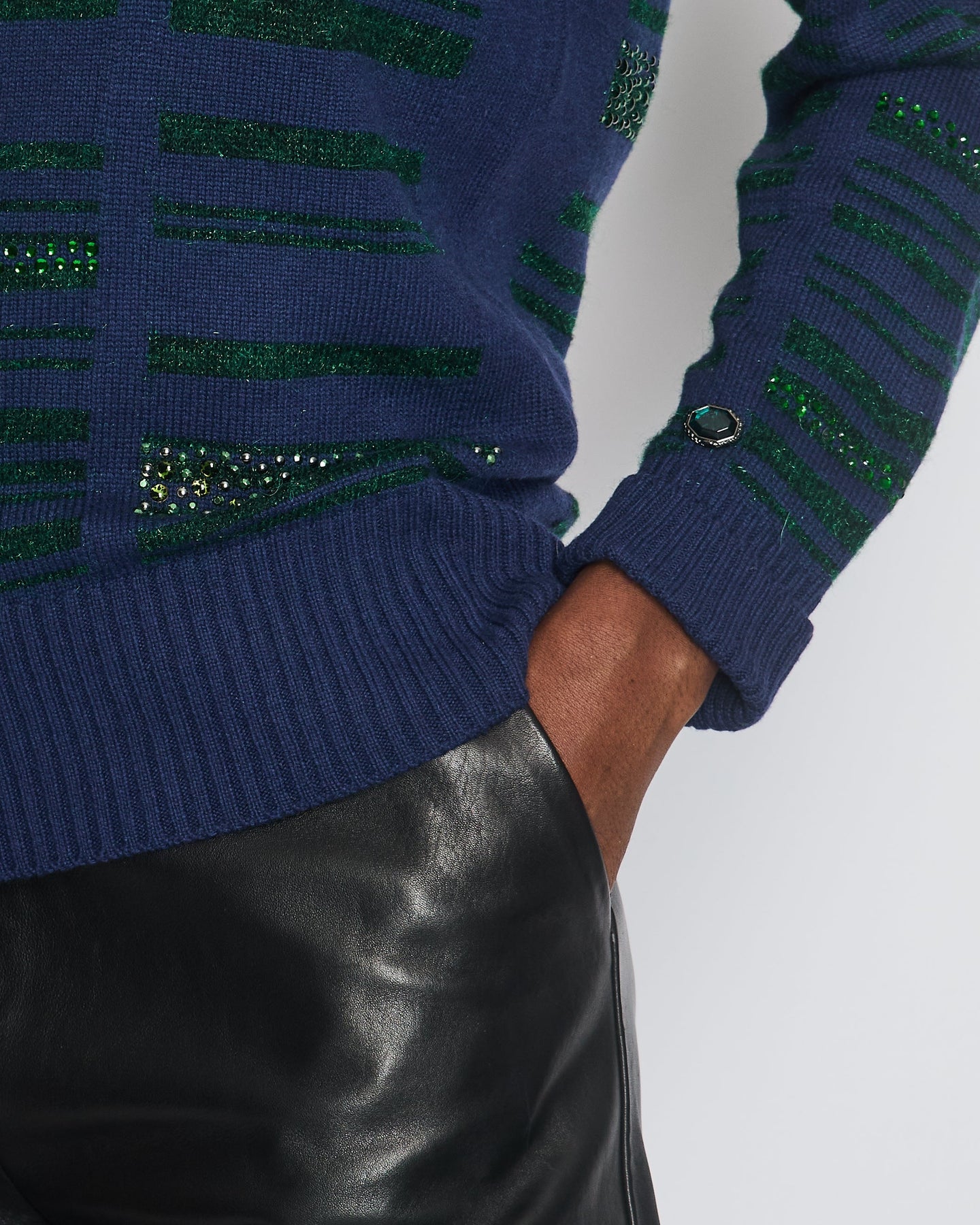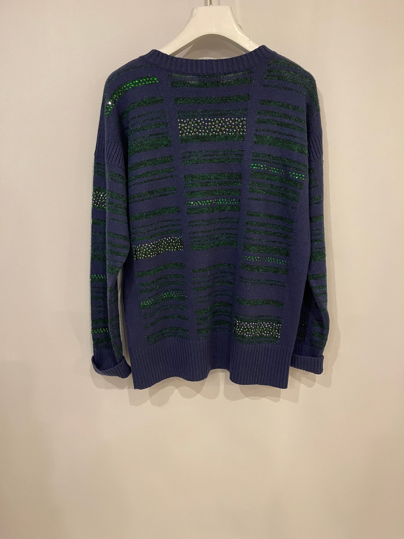 Chanel Navy Cashmere Long-Sleeve Jumper with Green Sequin Embellishments Size FR 36 (UK 8)