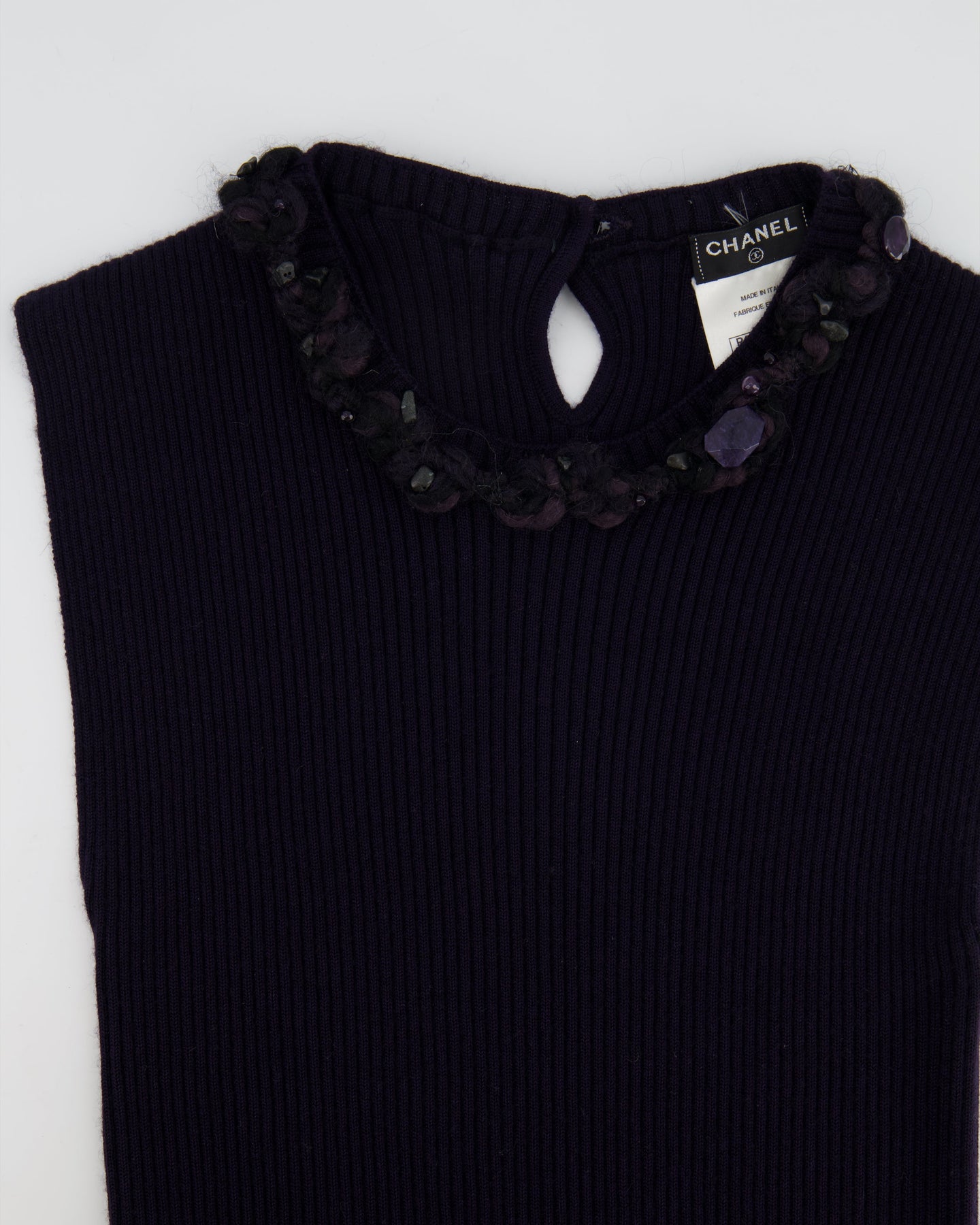 Chanel Purple Cashmere Silk Blend Sleeveless Top with Stone-Embellished Collar Size FR 40 (UK 12)