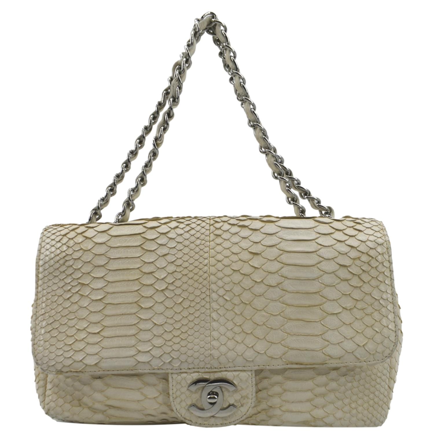 Chanel Flap Python Leather Crossbody Bag Ivory
