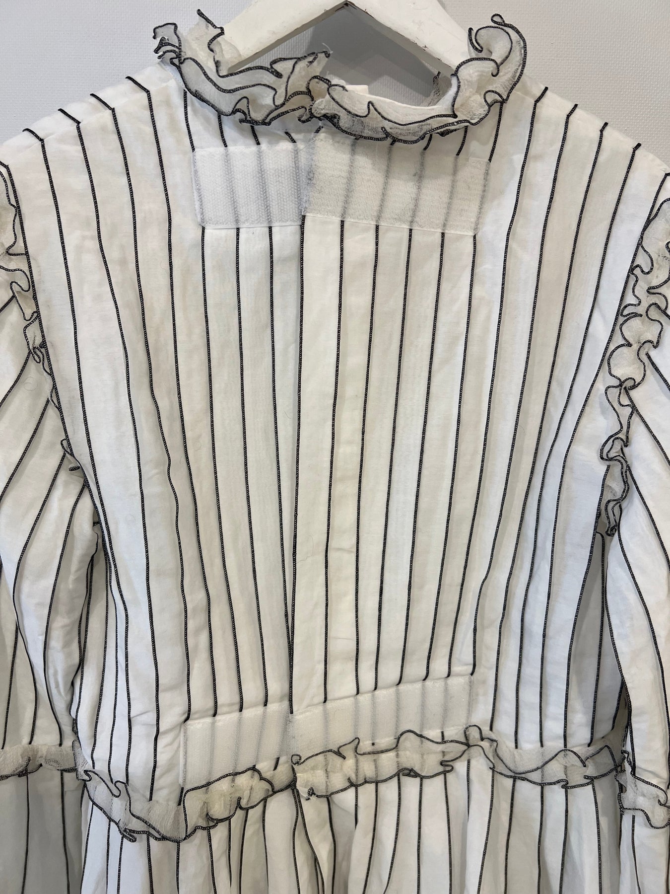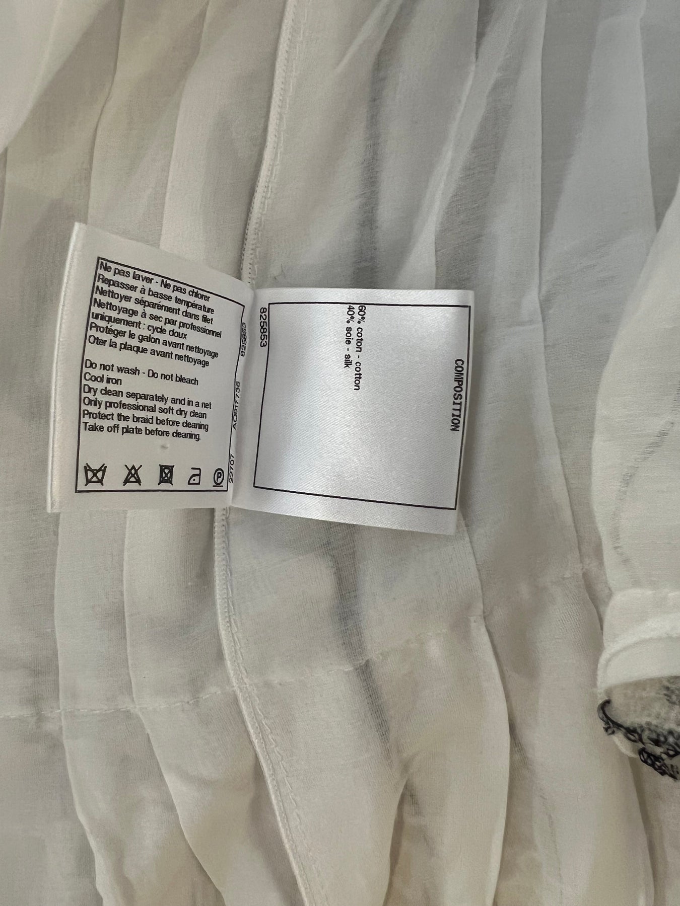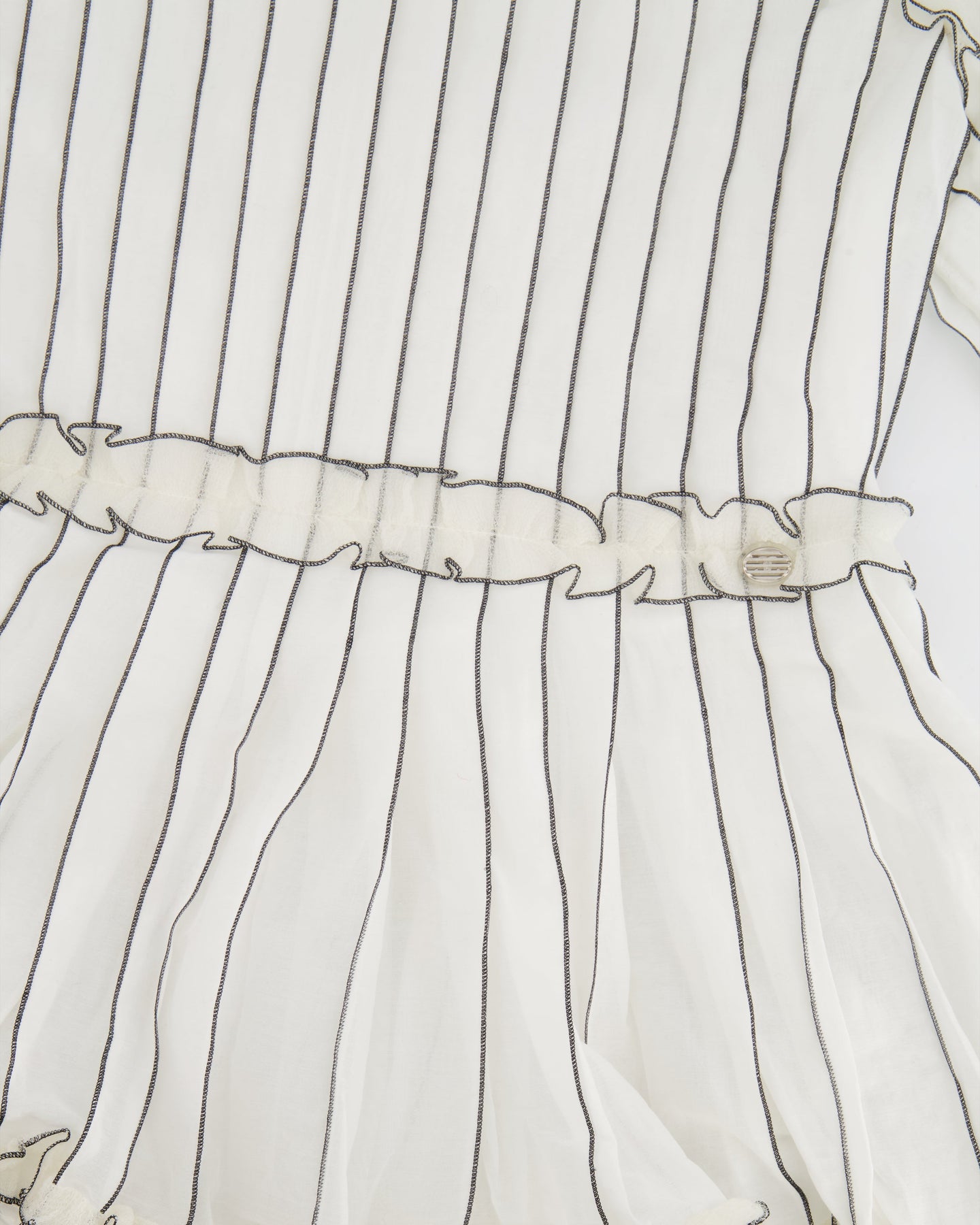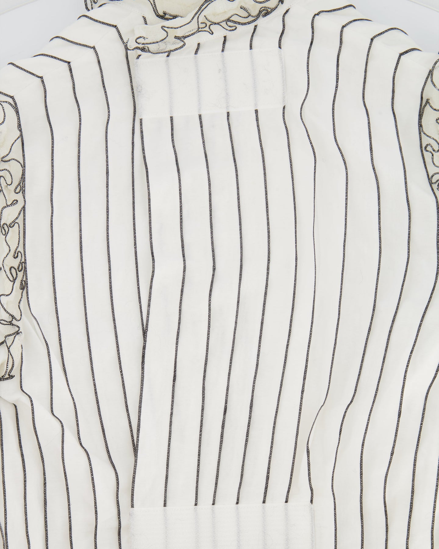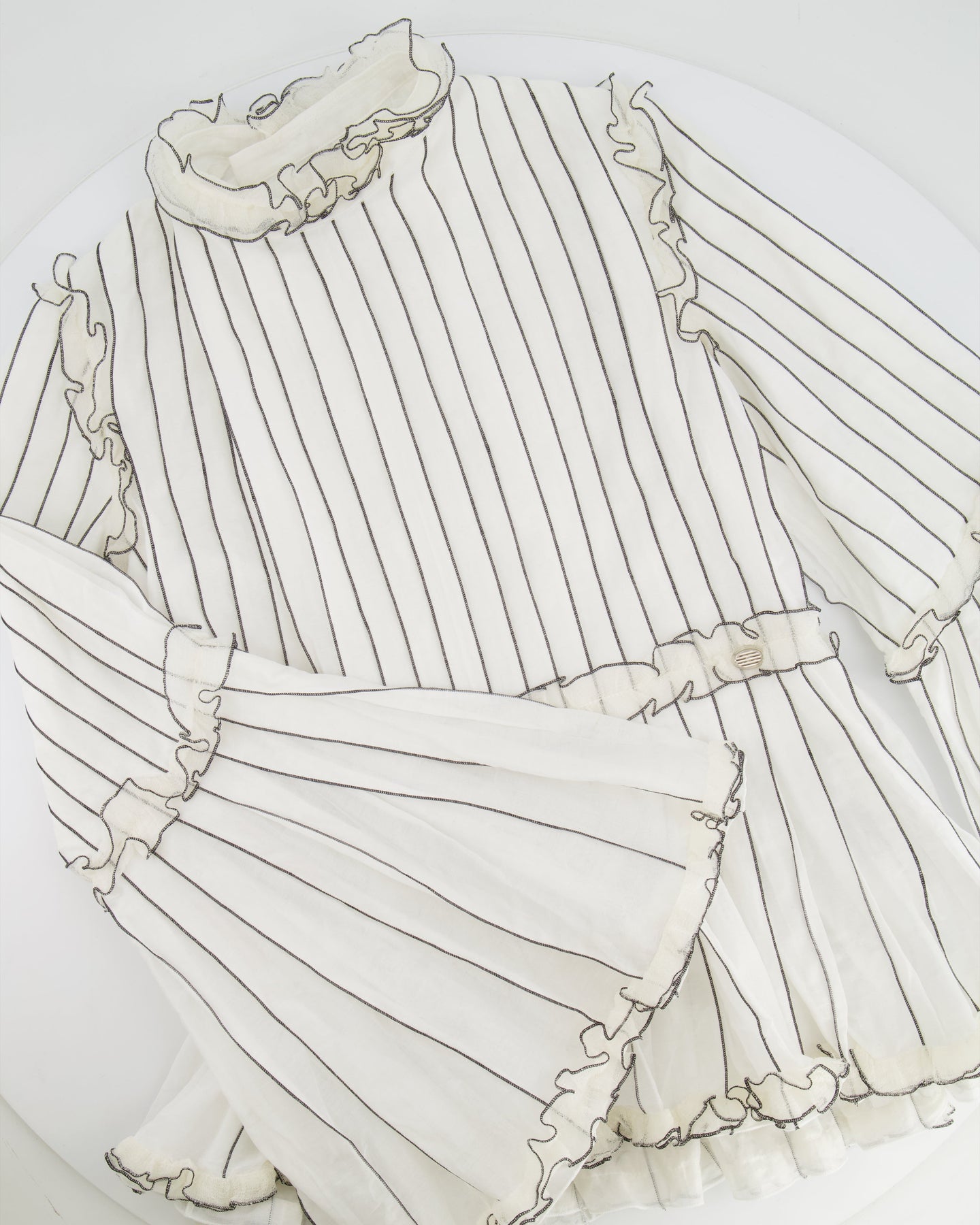 Chanel Spring 2017 White Silk Striped Ruffle Long-Sleeve Top with Velcro Back Detail Size FR 36 (UK 8)