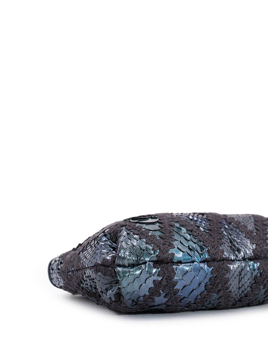 Chanel Stitch Pochette Bag or . This bag is in genuine python with silver chain. It features CC logo charm zipper pull, single interior pocket, blue silk lining to match the exterior and top zip closure.