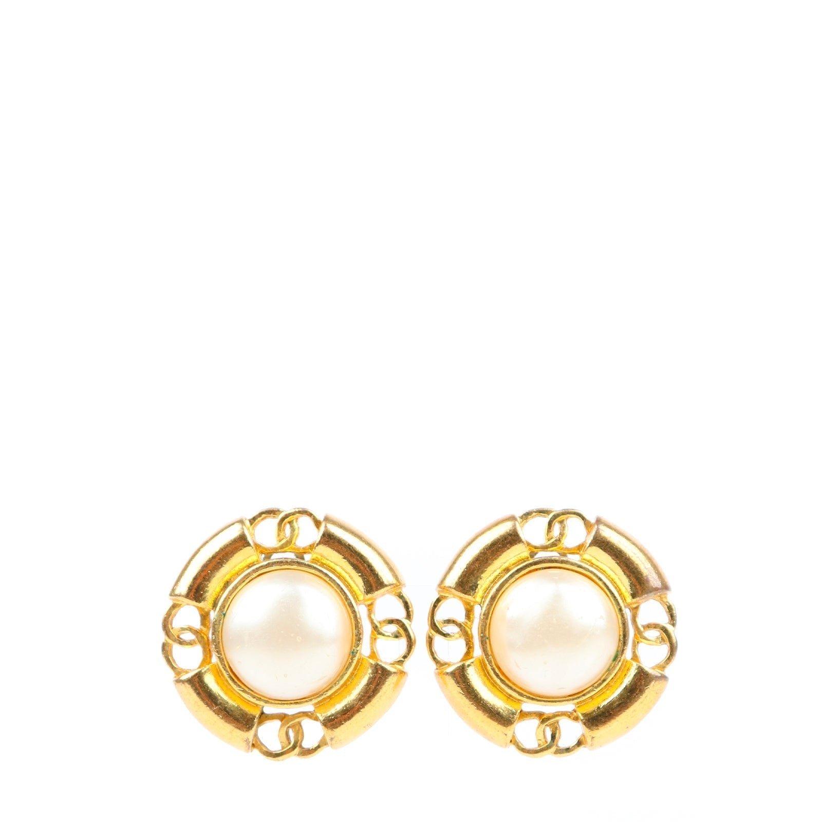 Model: Vintage Golden jewelry store White pearl CC logo Clip clip Dimensions: 3cm in diameter Earrings in New condition, minimal oxidation and some brands