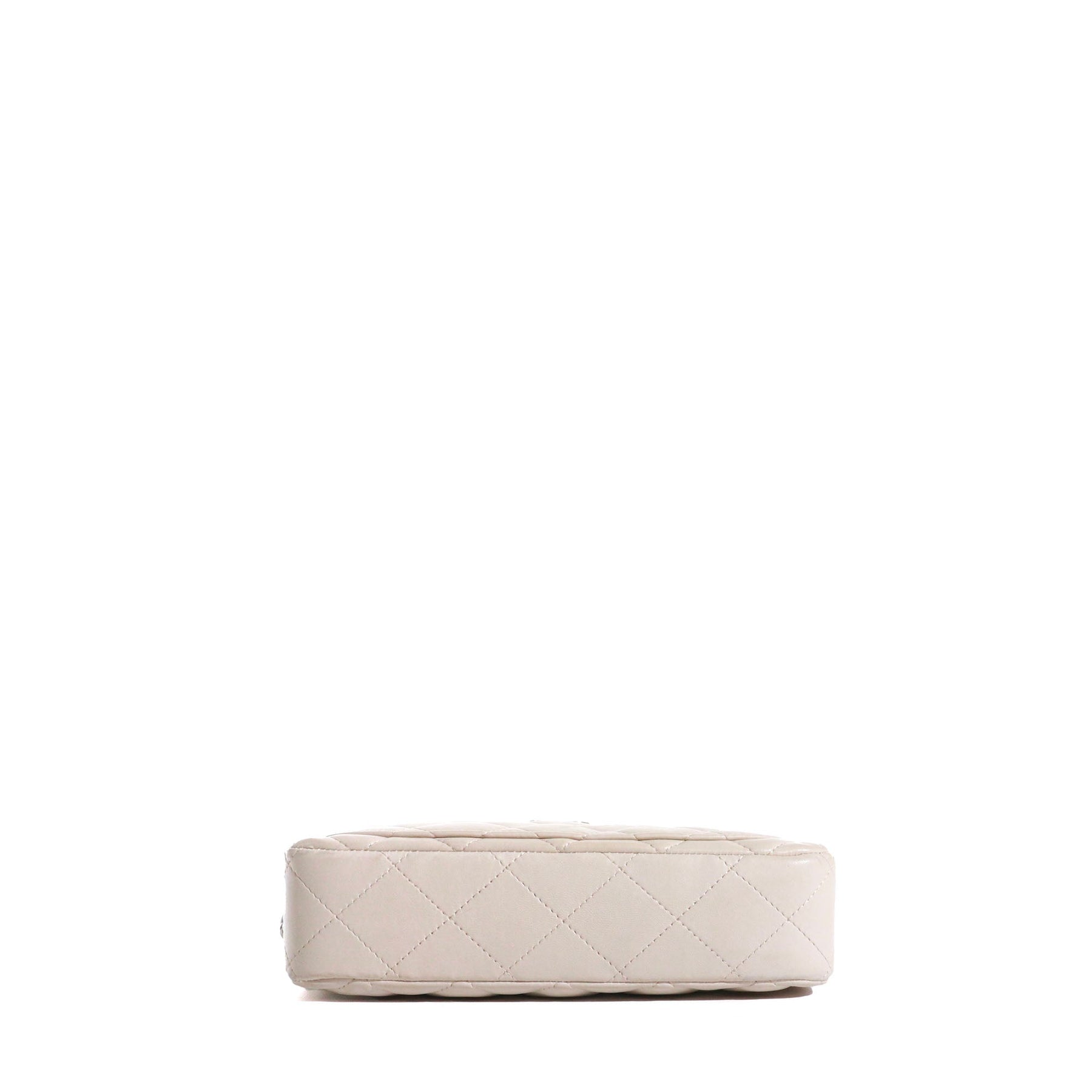 Model: Vintage Material: Smooth quilted leather Cream colour Silver details Dimensions: 21cm x 11cm x 5cm White leather interior lining External patch pocket Internal zipped pocket With hologram and card CHANEL logo on the zipper