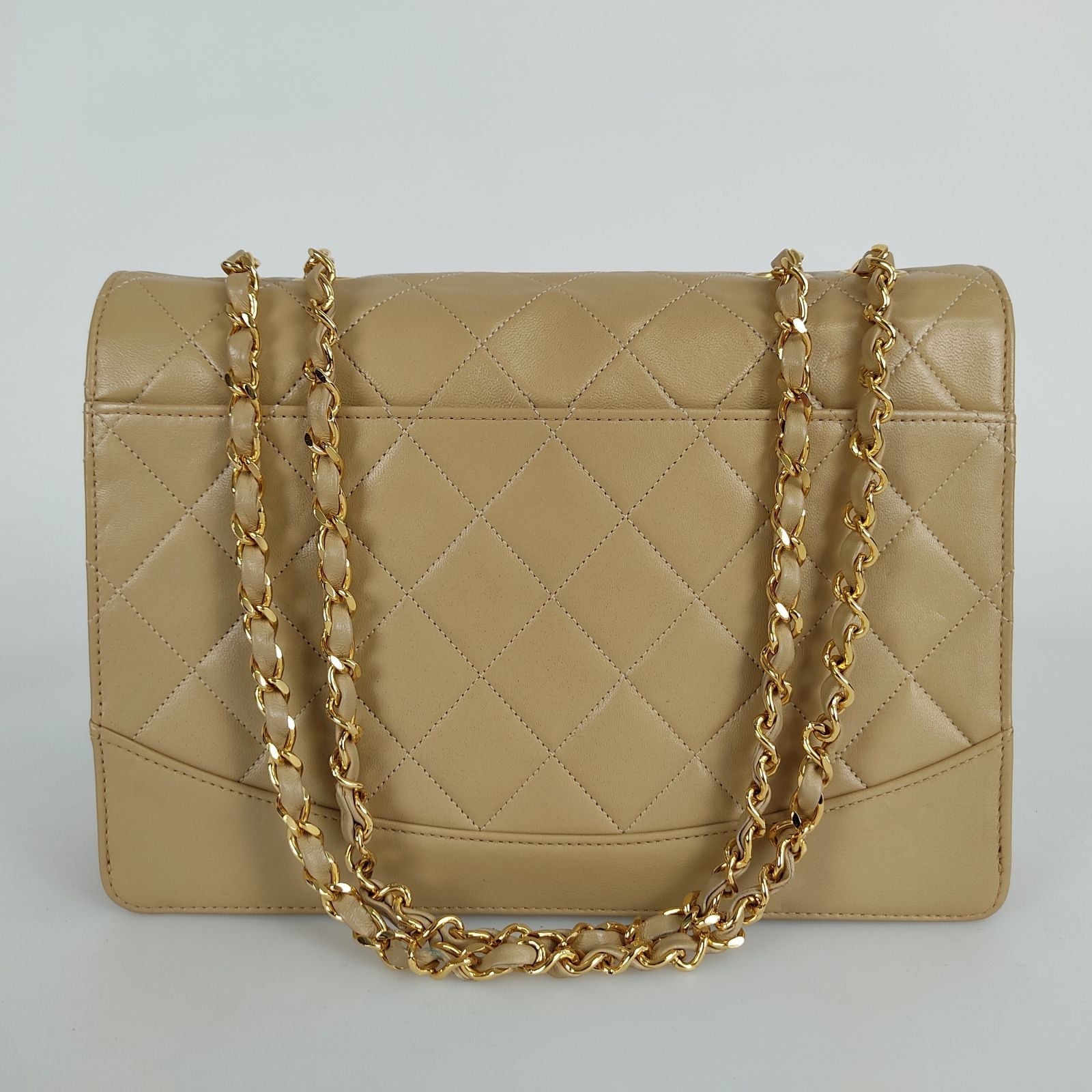 Chanel Timeless Classica vintage shoulder bag in beige matelasse leather.Made in France in 1989 - 1991.Turn lock closure with engraved logo.Golden metal accessories.Shoulder strap with extendable chain, so it can be on the shoulder or crossed over the body.One external back pocket.Leather interior with one zipped pocket and one open.Its conditions are New, in fact it does not have any obvious scratches or stains.Only small imprints in the skin that are hardly visible.Complete with box and dustbag.DIMENSIONS: L: 26cm - H: 19cm - W: 8cmAll our items are selected, carefully sanitized and ated by our experts.CODE: 5136B850BRANDS: ChanelMODEL: Timeless Classic turn lock bag in beige leatherMADE IN: France CODE: 1788707BeigeMATERIAL: LeatherCONDITION: New