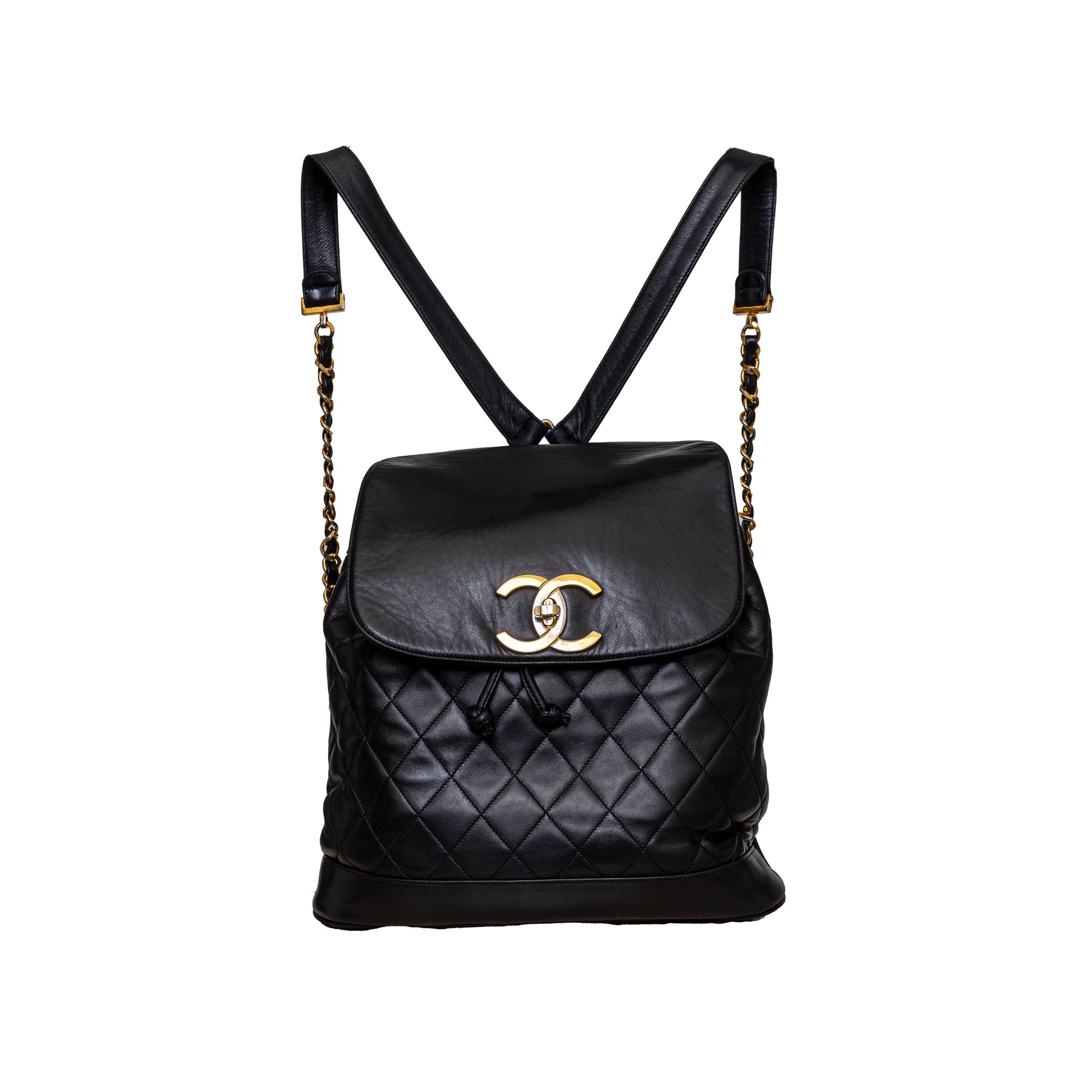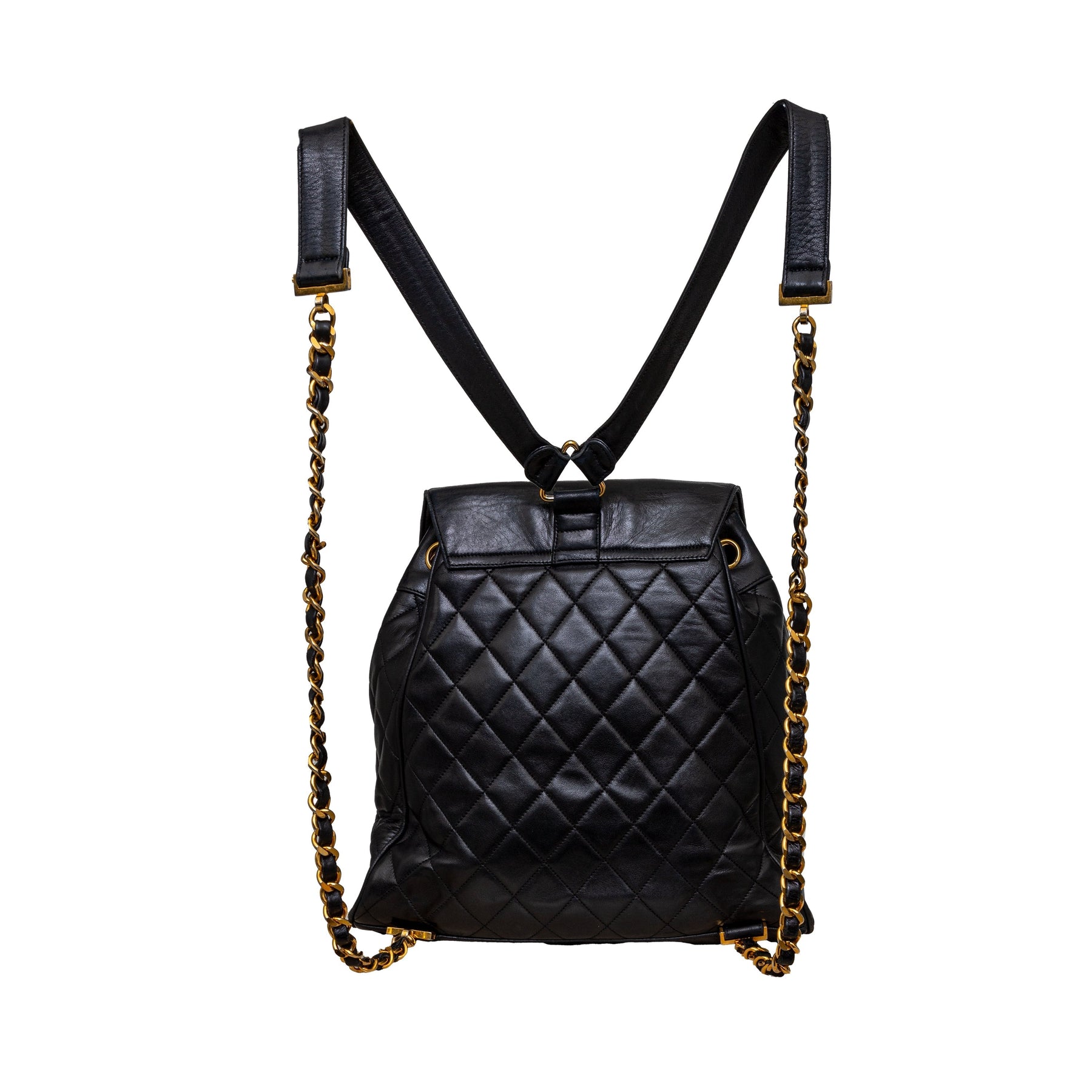 Carry vintage style on your shoulders with the Chanel Vintage Quilted Lambskin Drawstring Backpack.