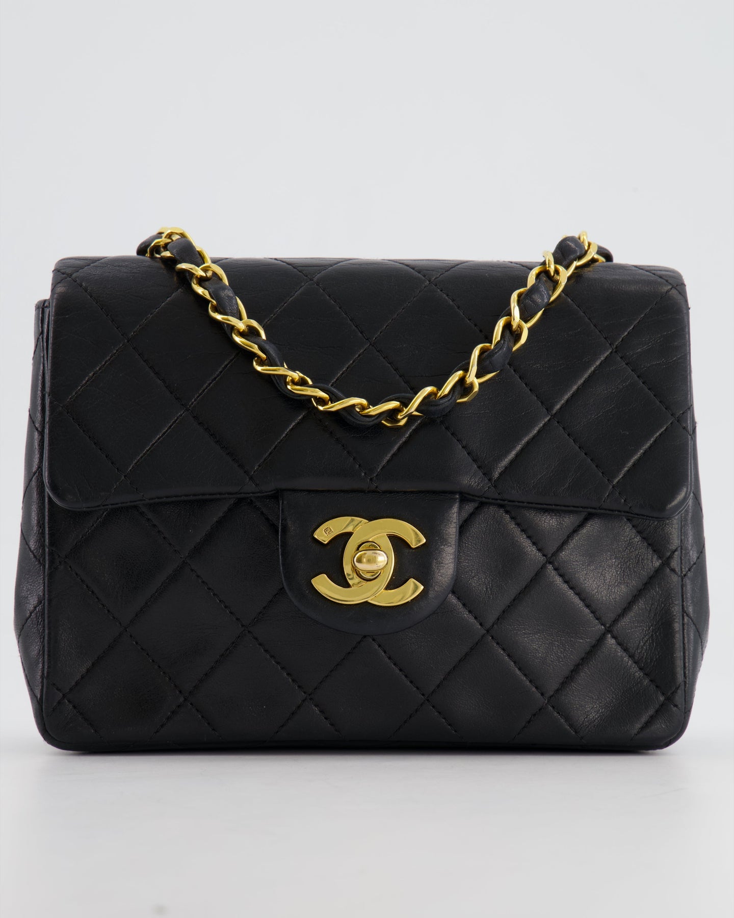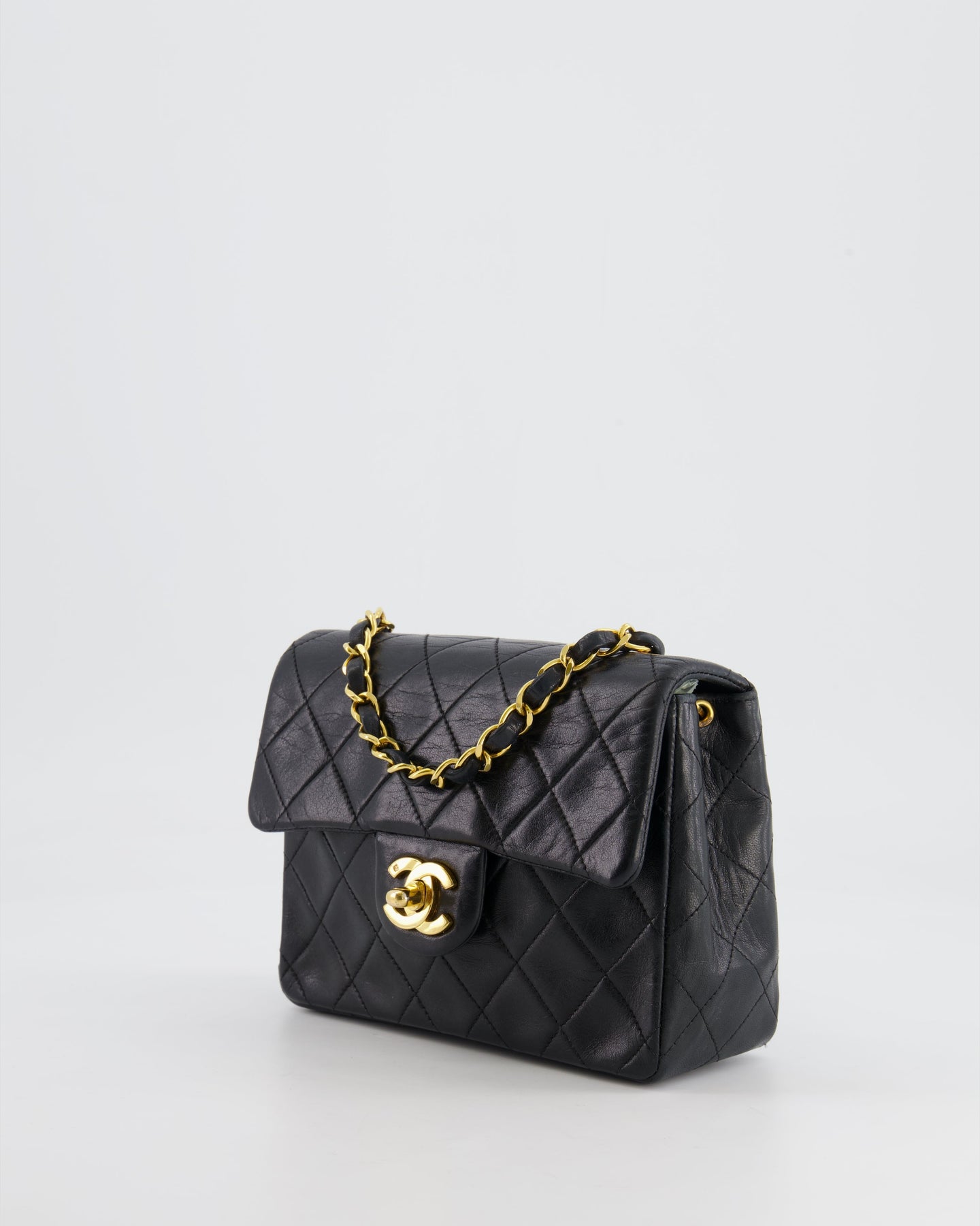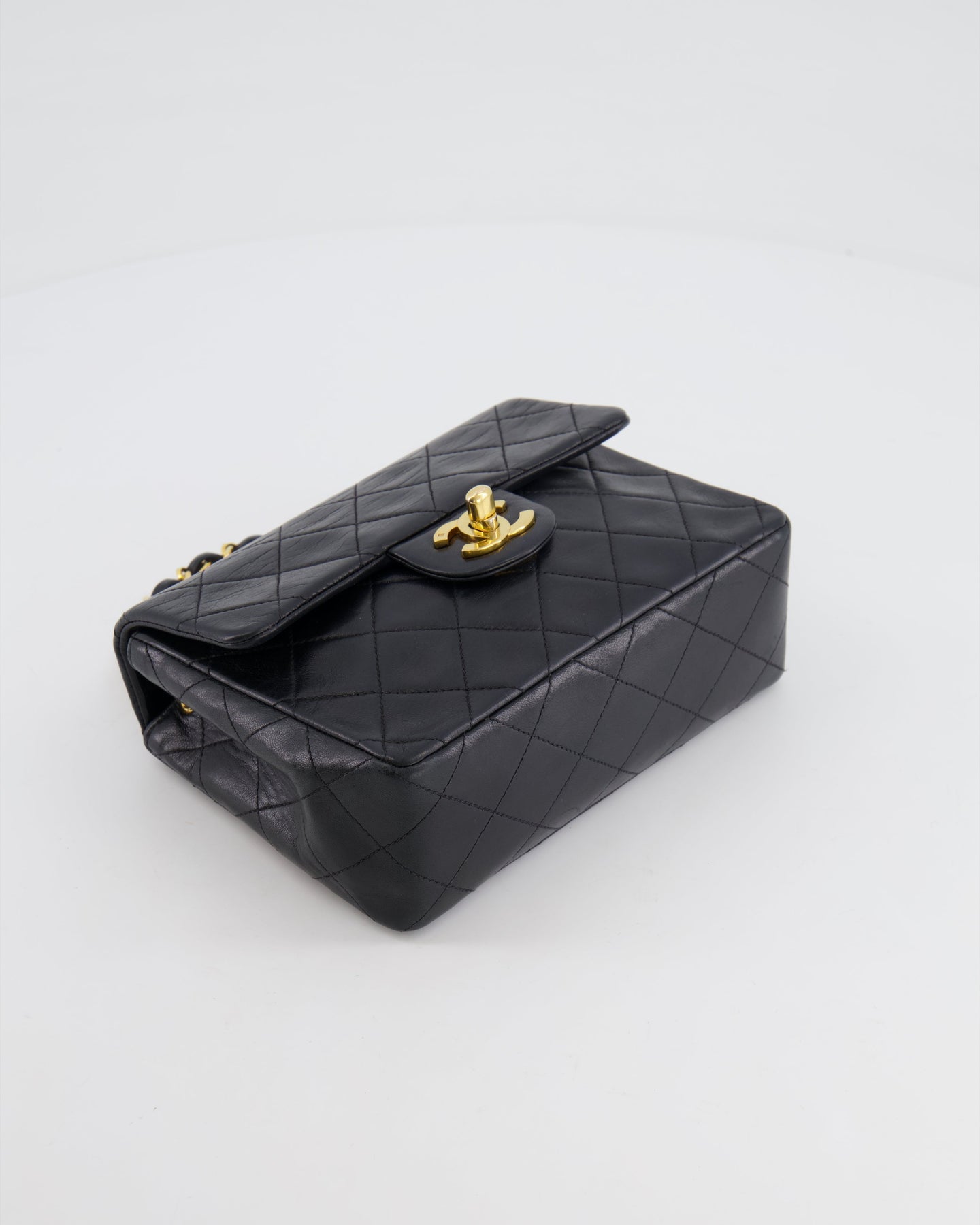 Chanel Vintage Black Mini Square Single Flap Bag in Lambskin Leather with 24K Gold Hardware