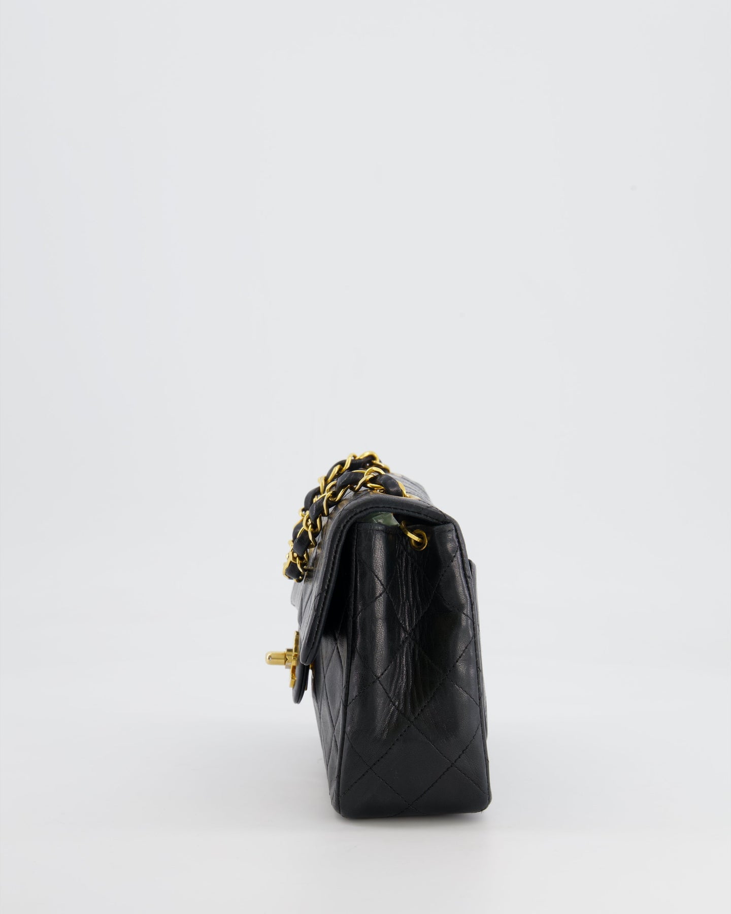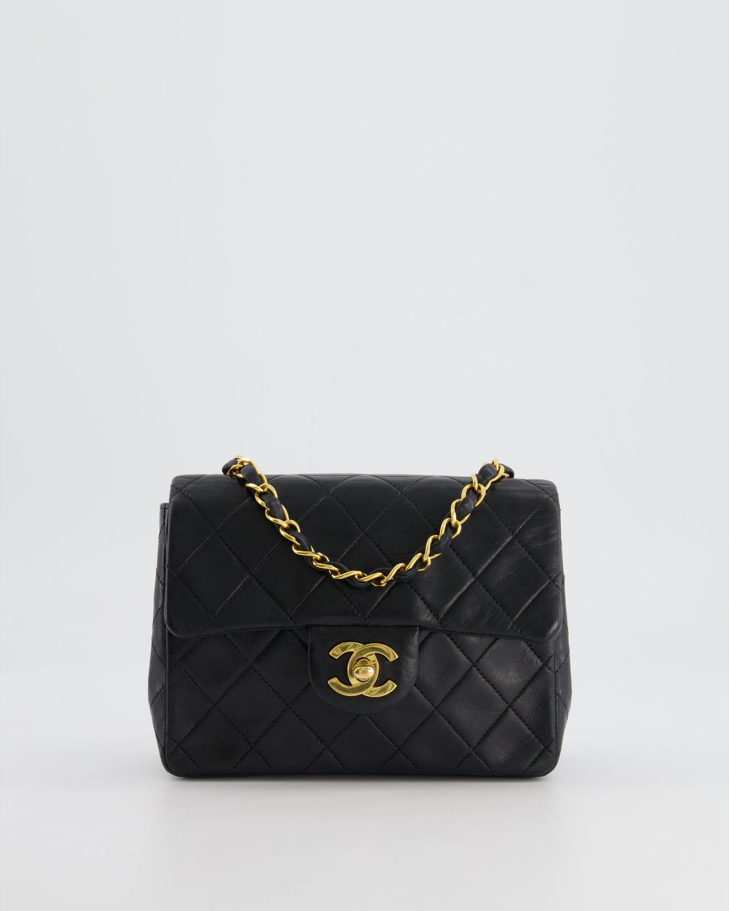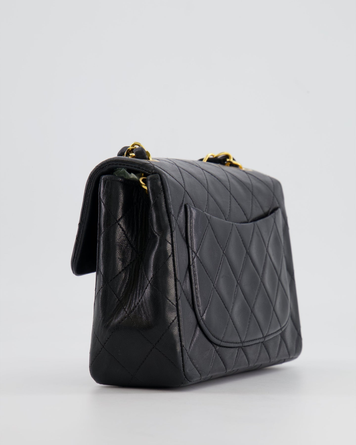 Chanel Vintage Black Mini Square Single Flap Bag in Lambskin Leather with 24K Gold Hardware