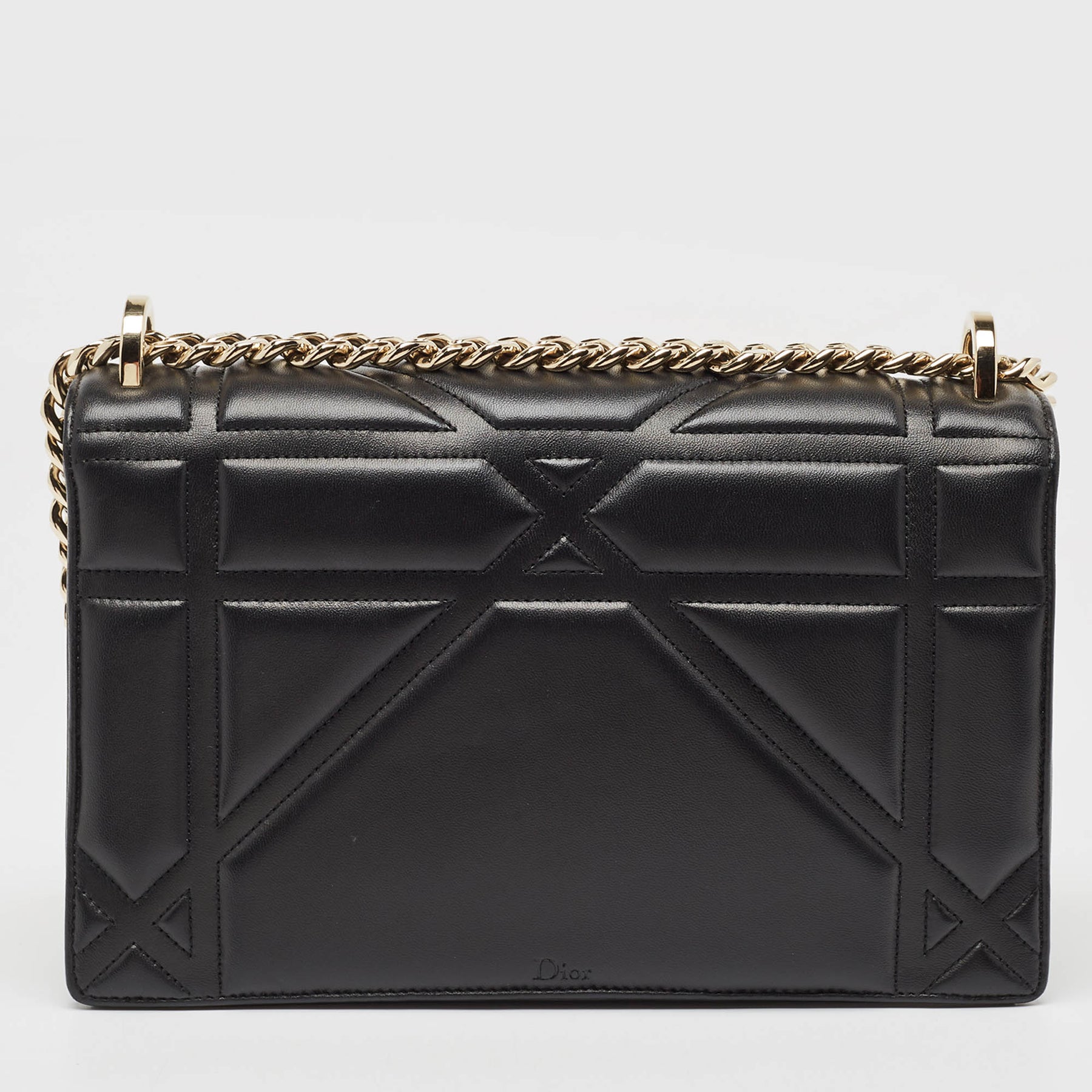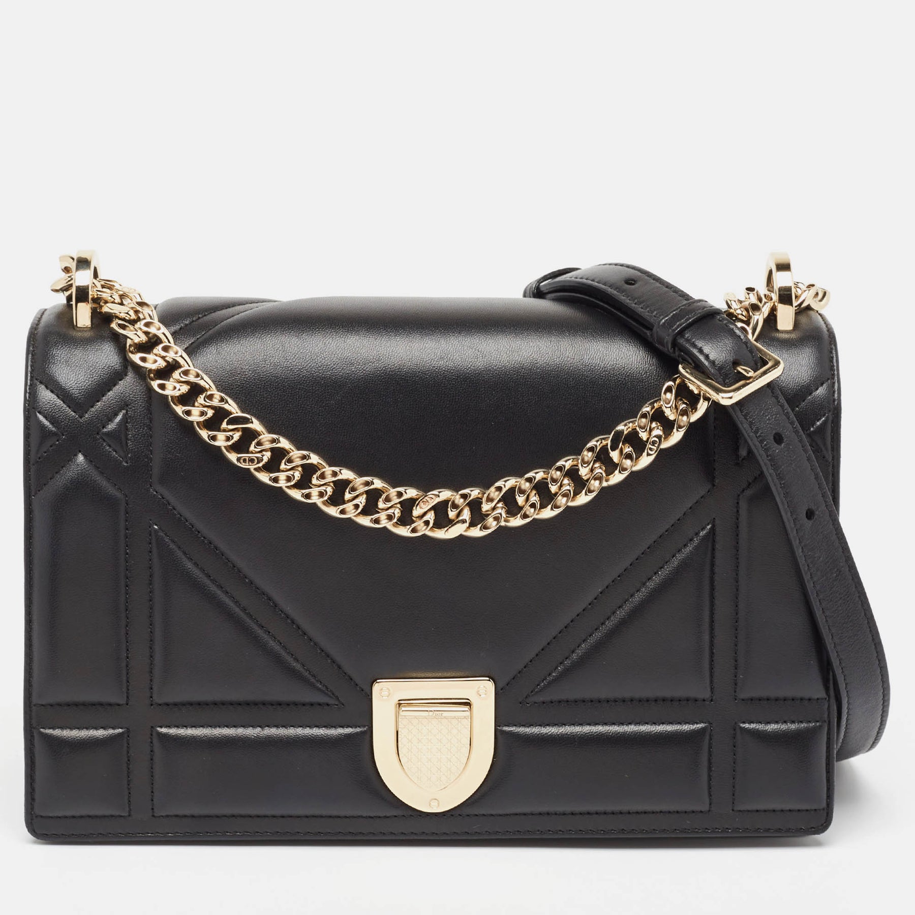DIOR Black Leather Medium ama Flap Shoulder Bag