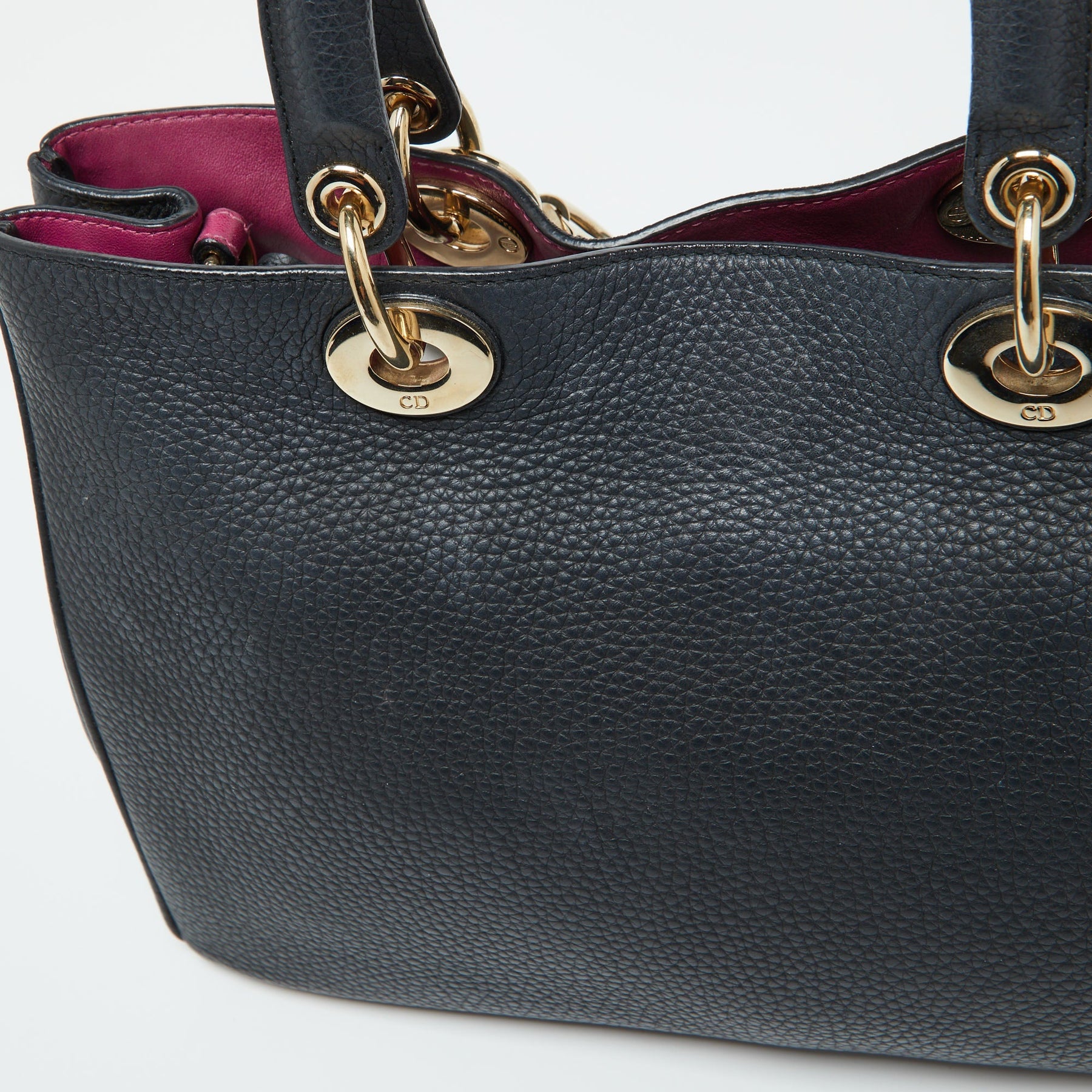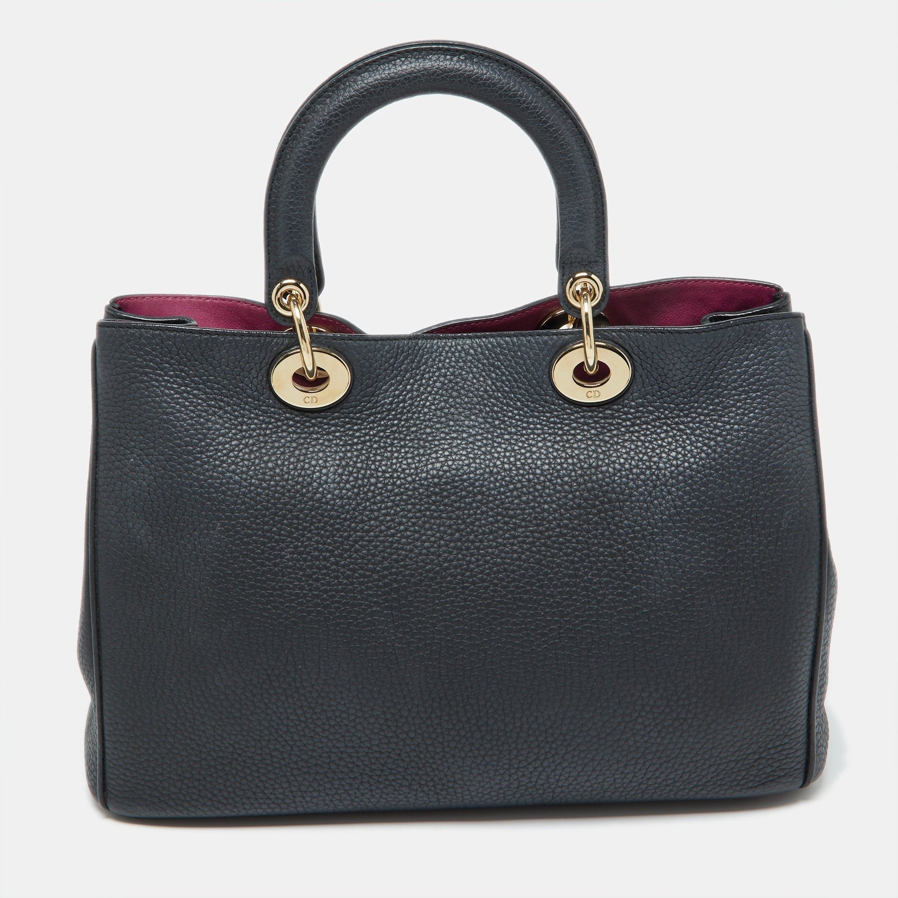 The Diorissimo perfectly captures the refined craftsmanship and the brands vision of timeless elegance. The spacious interior makes this Dior tote a highly functional accessory. Created from leather, it is complemented with dual top handles, a shoulder strap, and a button closure. The DIOR letter charms on the front lend it a luxe finish.