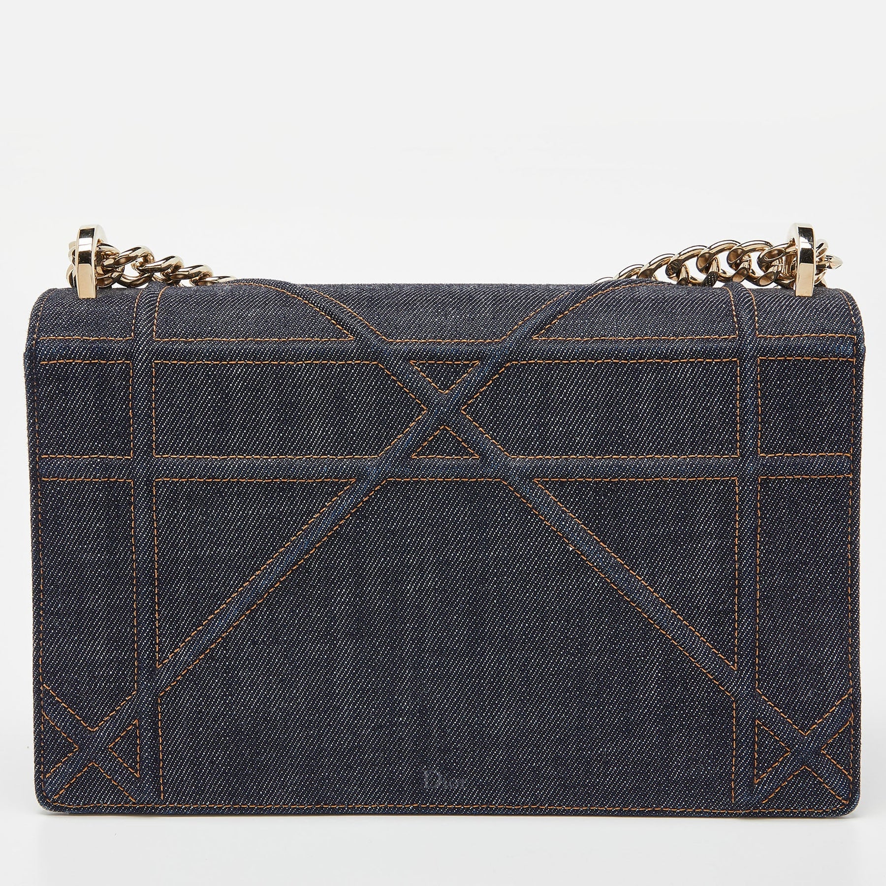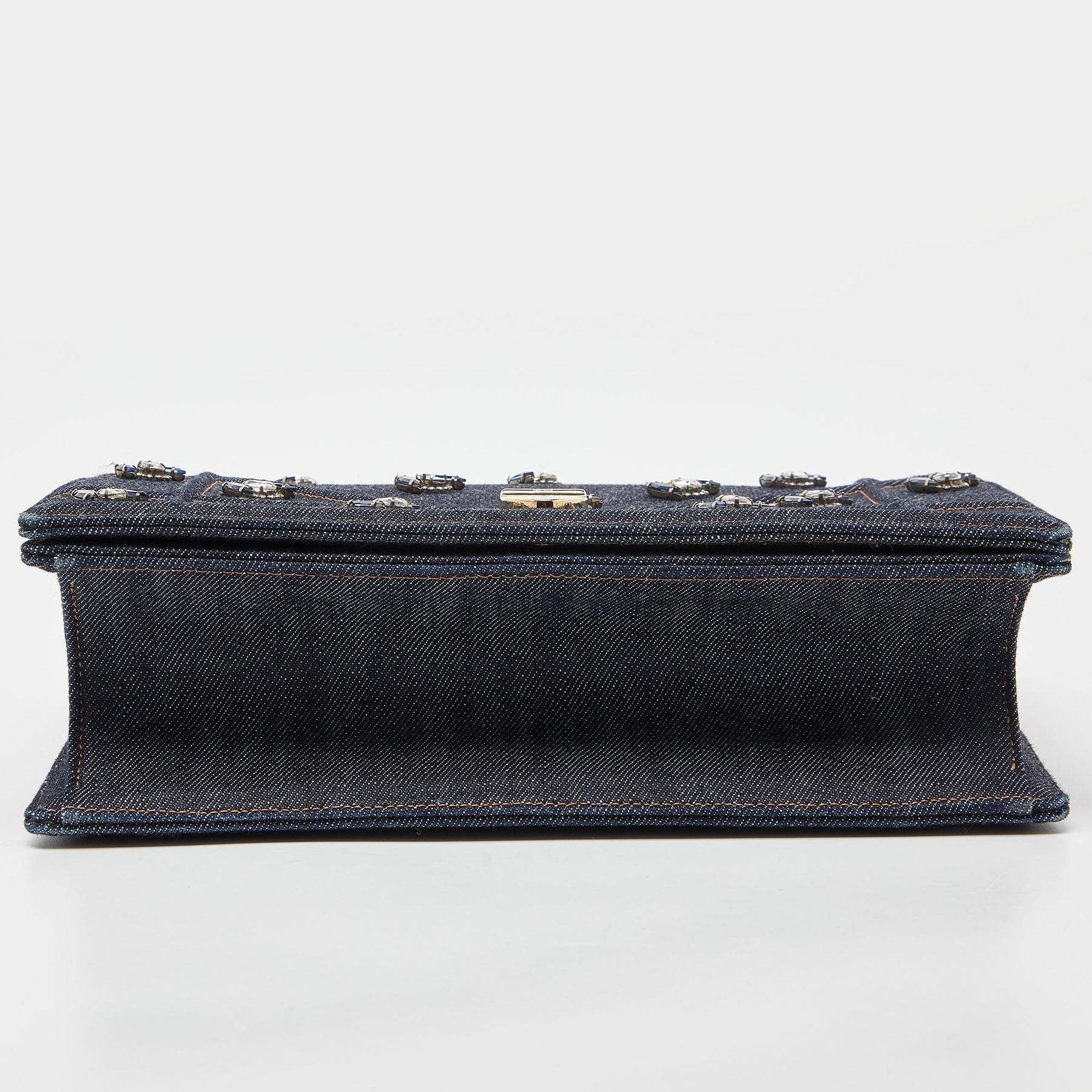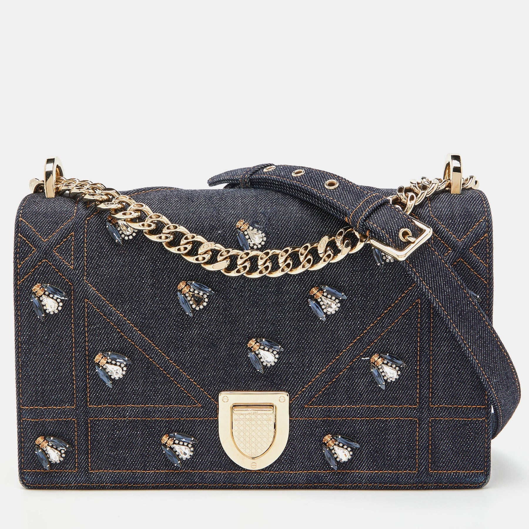 DIOR Blue Denim Medium Crystal Embellished ama Shoulder Bag