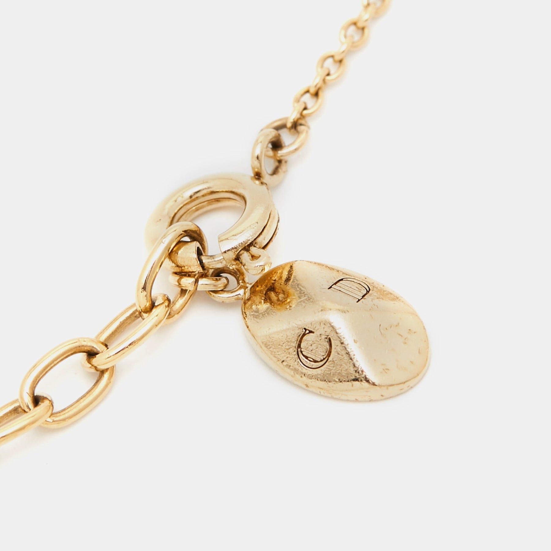 Create an elegant, timeless, and classic addition to both casual and even special events with this beautiful Dior bracelet. Constructed in gold tone metal, this bracelet features a lovely flower set with crystals.