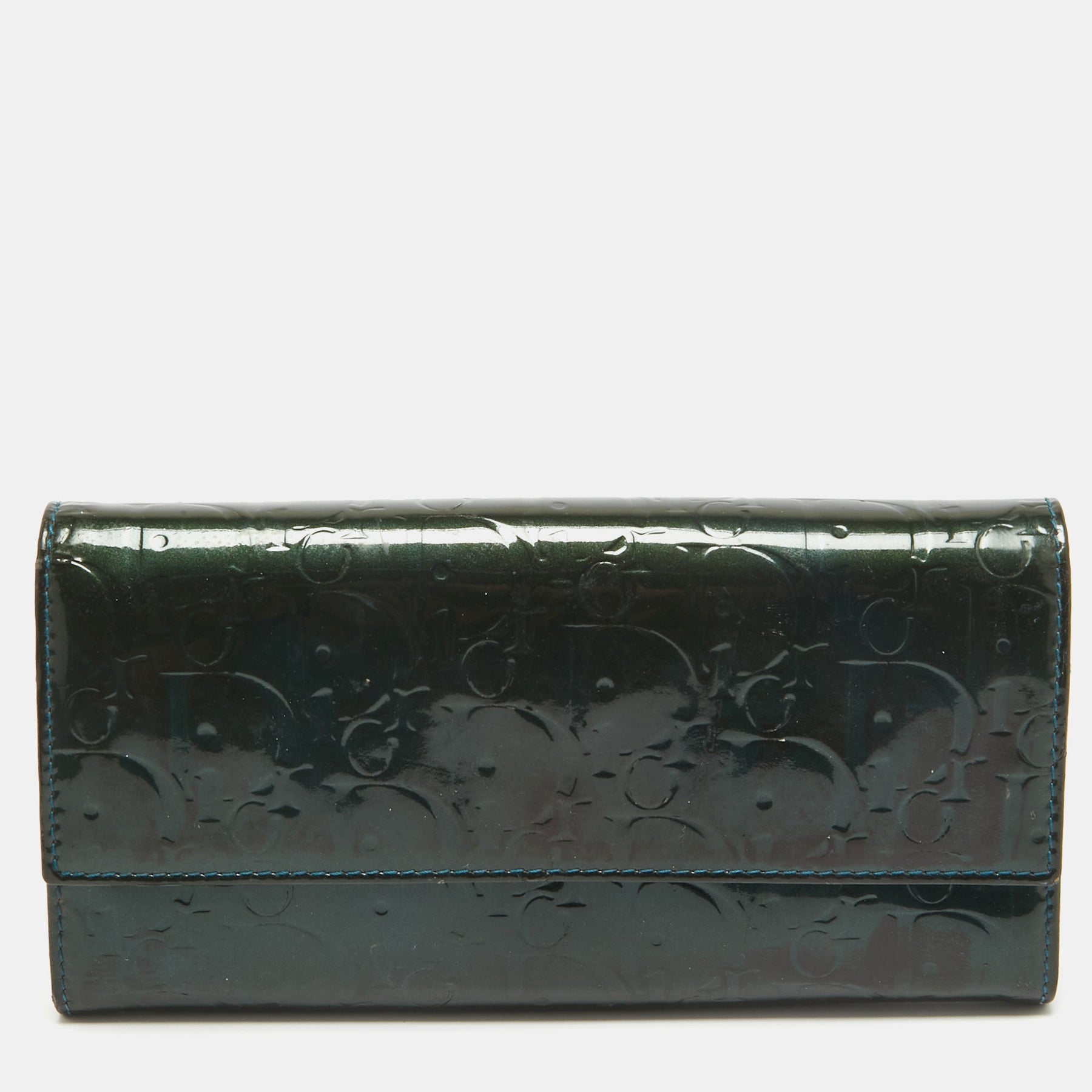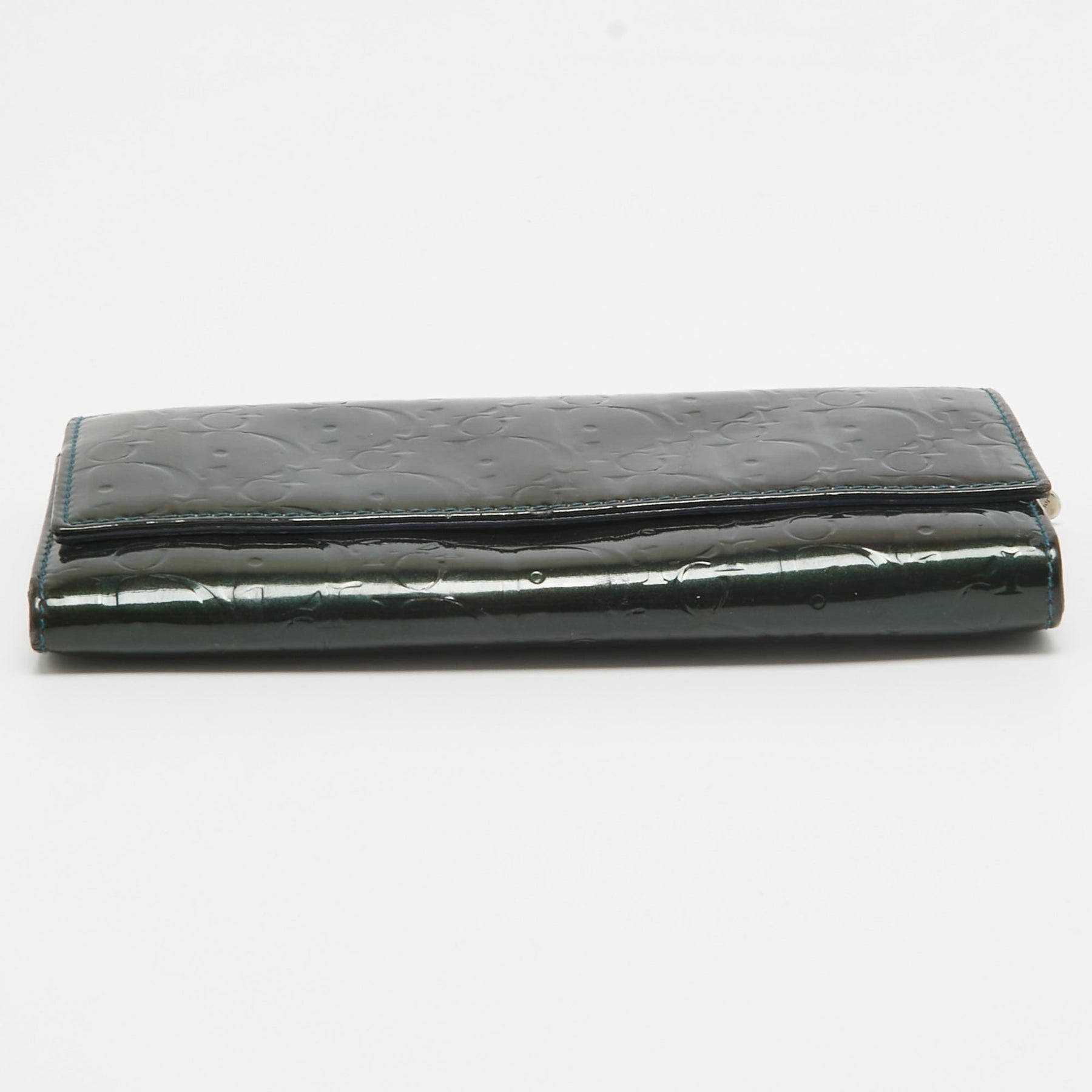 DIOR Green Oblique Embossed Patent Leather Continental Flap Wallet