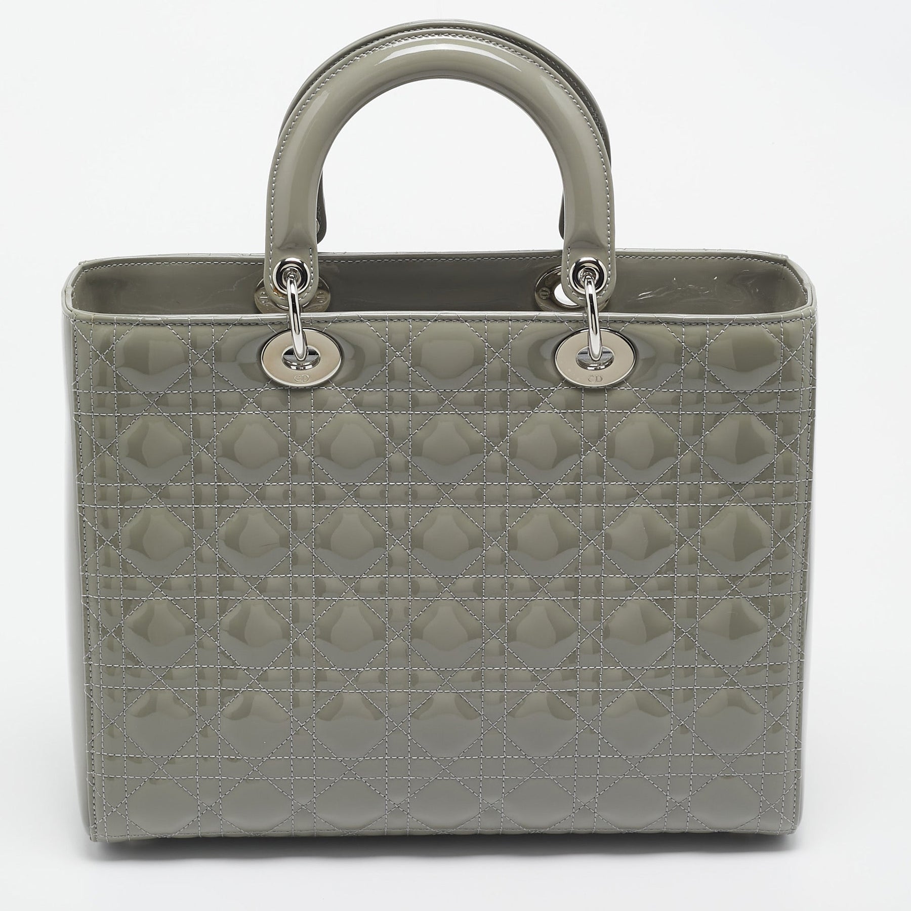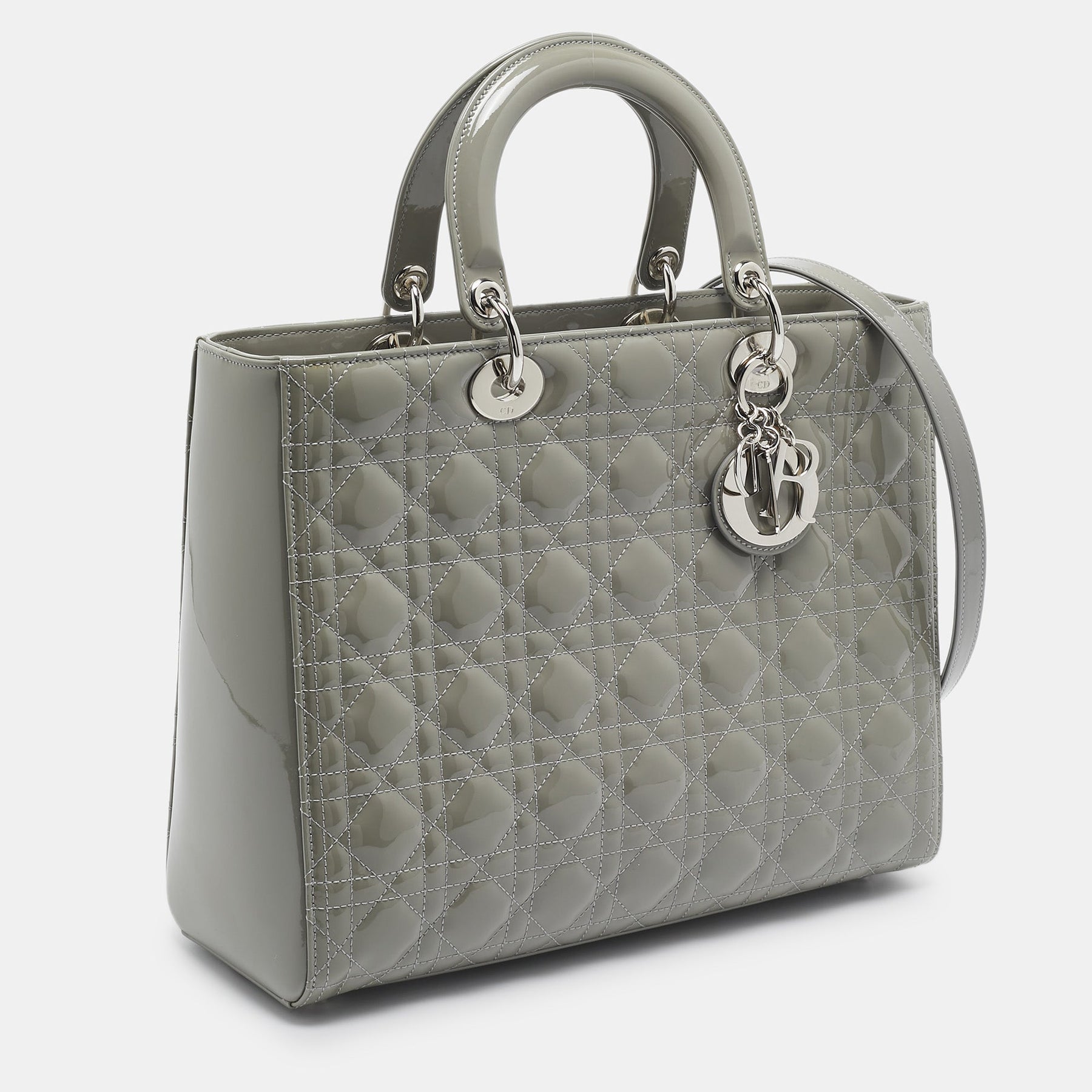 DIOR Grey Cannage Patent Leather Large Lady Tote