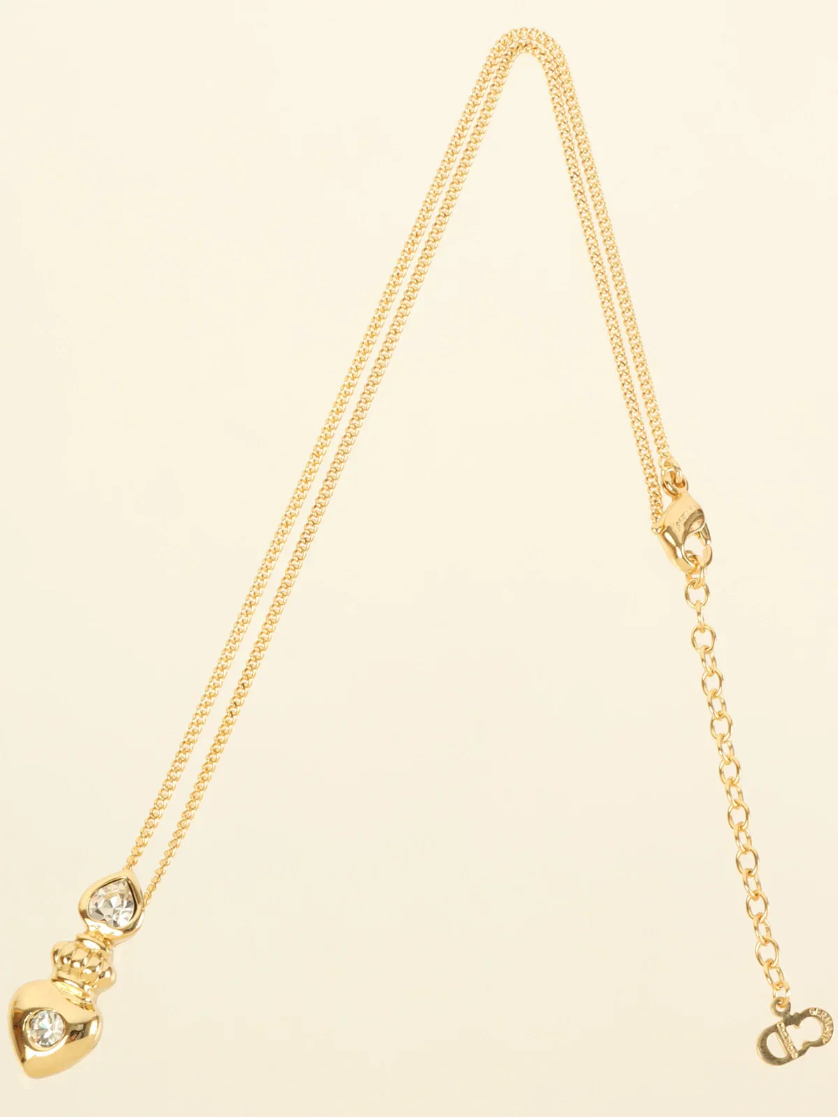 DIOR Heart Rhinestone Pierced Earrings Necklace Sets Gold