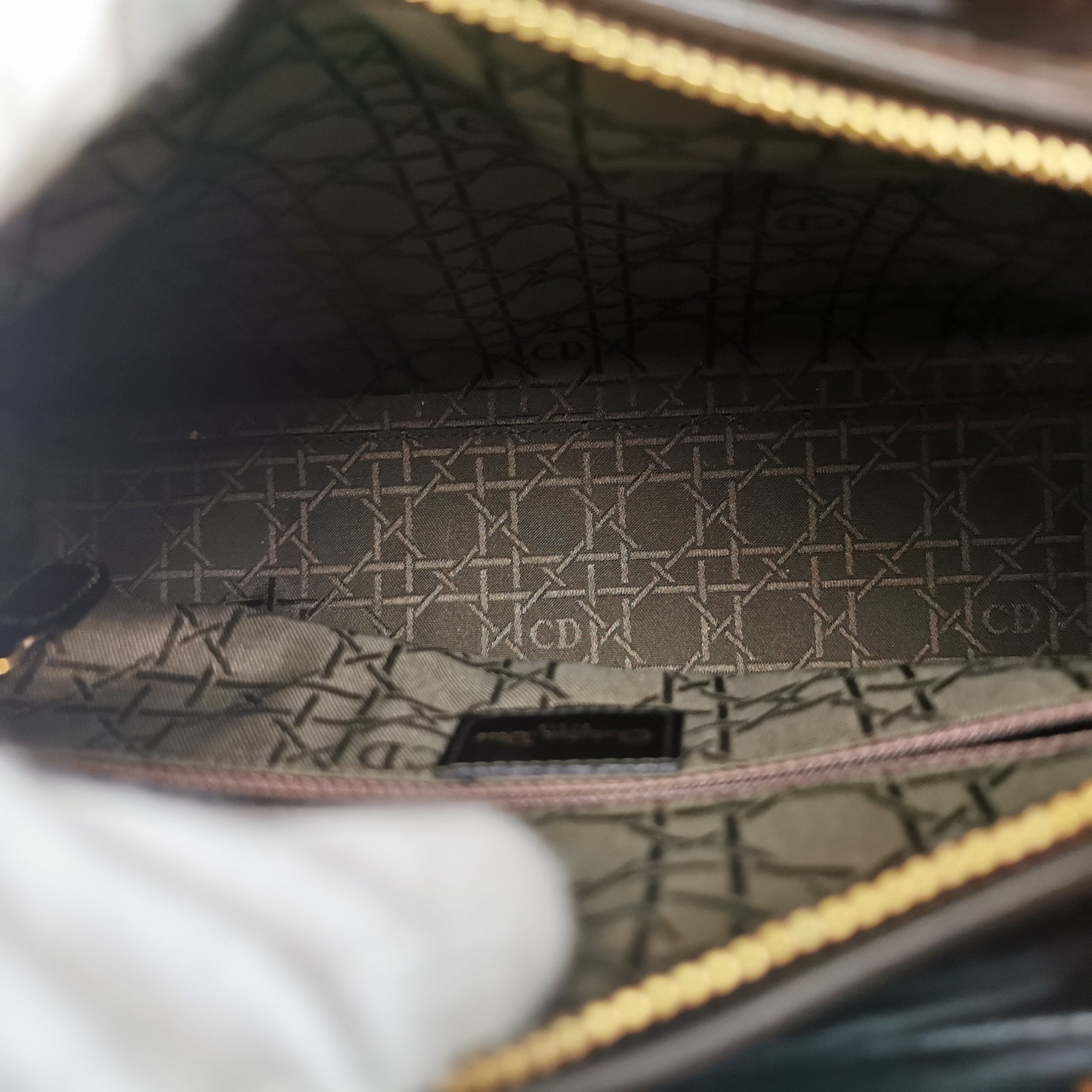 This beautiful Dior Lady Dior in size Large is made of calfskin in leopard pattern. It has flat leather handles on the top, zipper closure on the top and zipper compartment inside. Golden Dior Tag hardware completes the look in a shiny way. The Bag is in the hand.