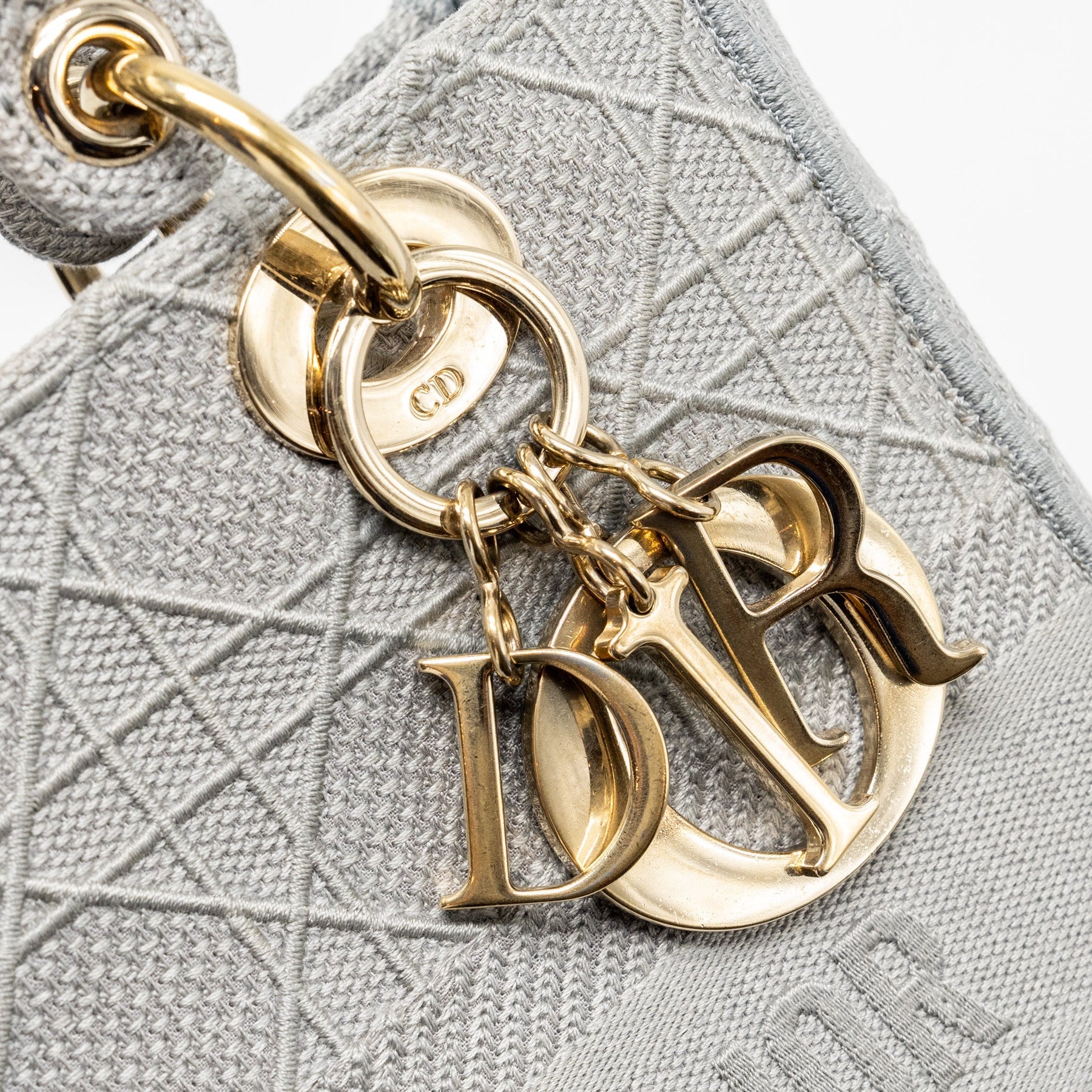 Top quality Dior Medium Lady D-Lite Bag Cannage Embroidery Grey