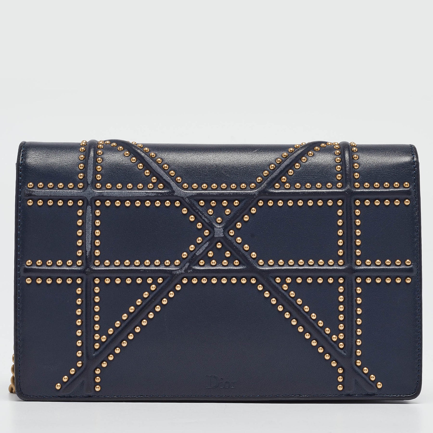DIOR Navy Blue Leather Studded ama Wallet on Chain