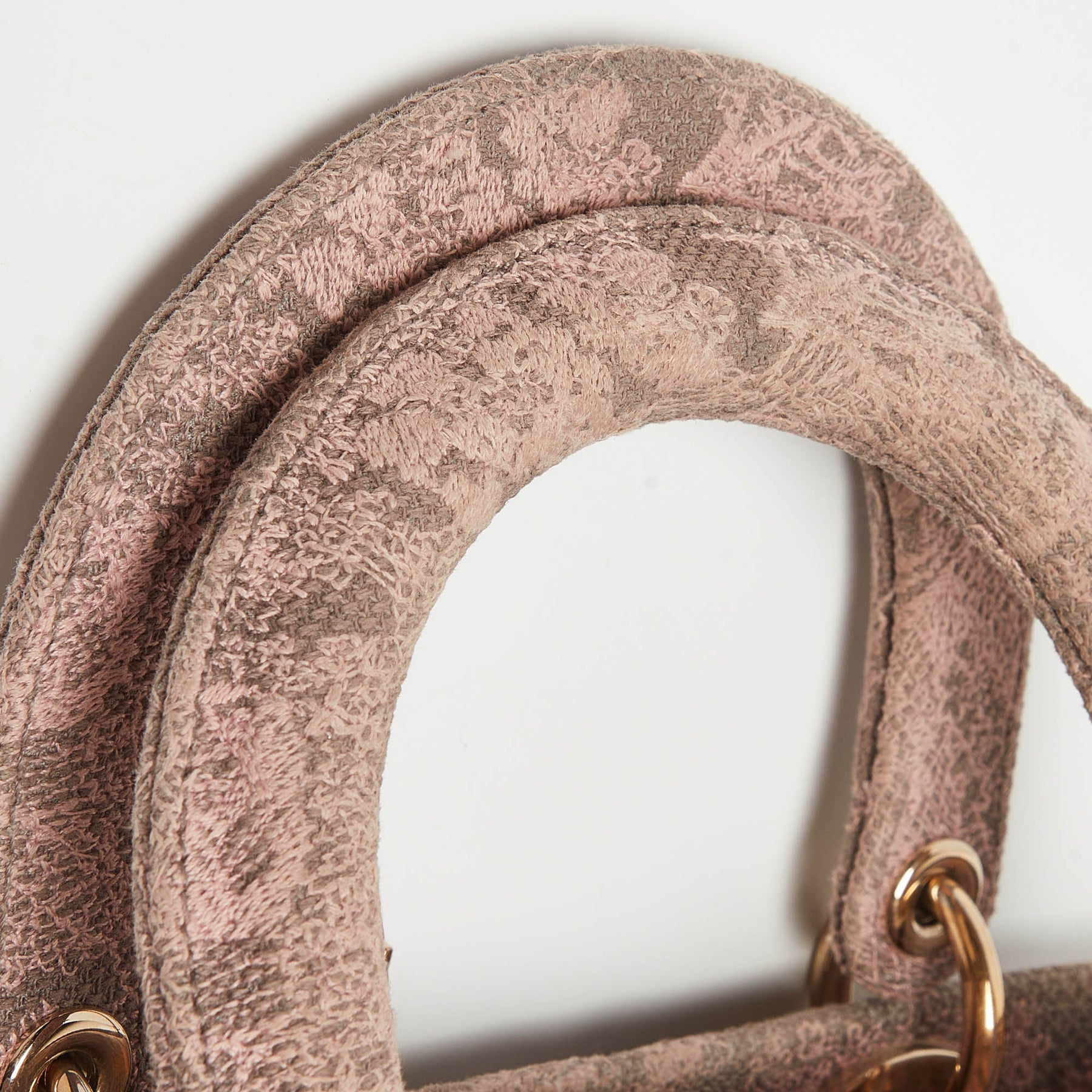 DIOR Pink/Grey Embroidered Canvas Medium Lady D-Lite Tote