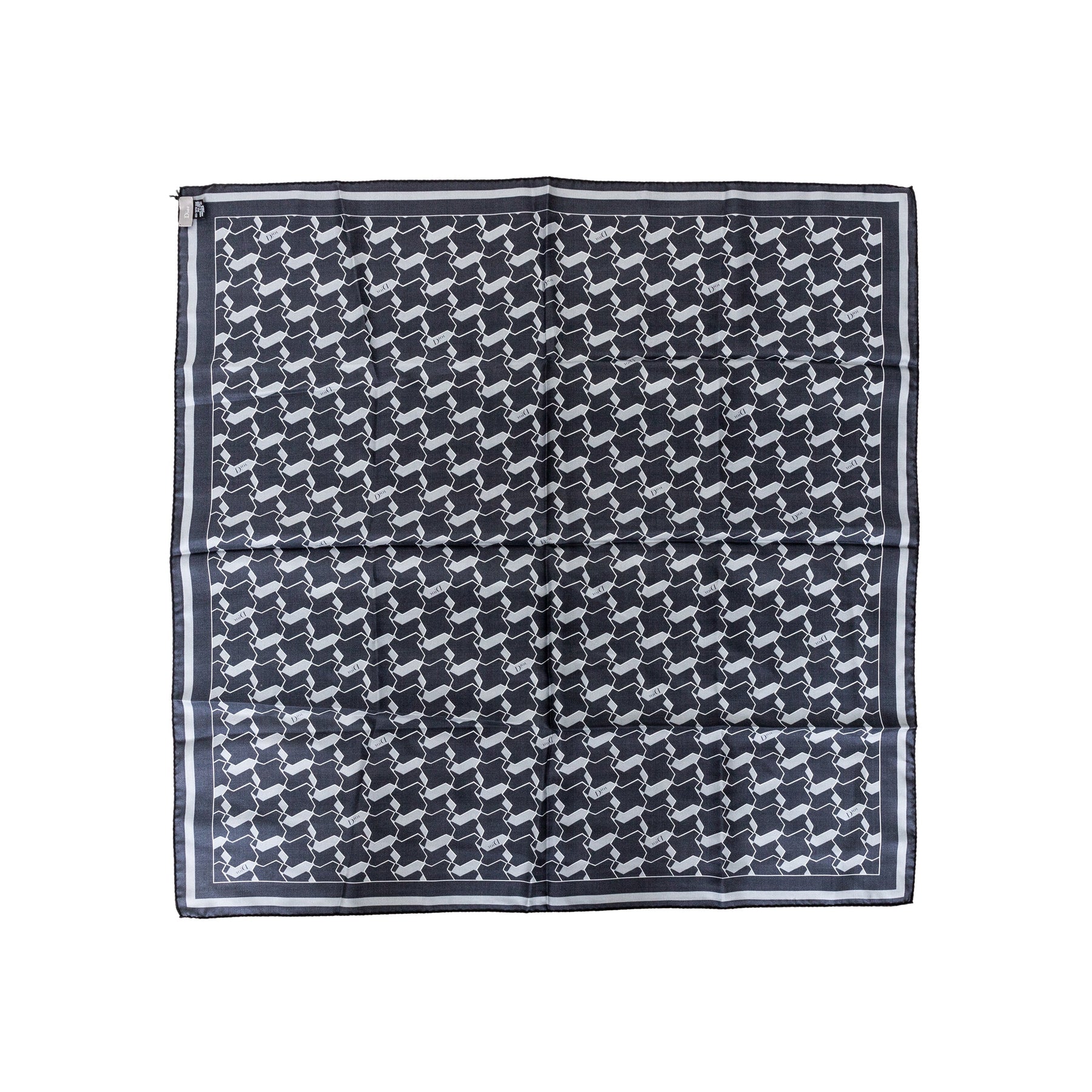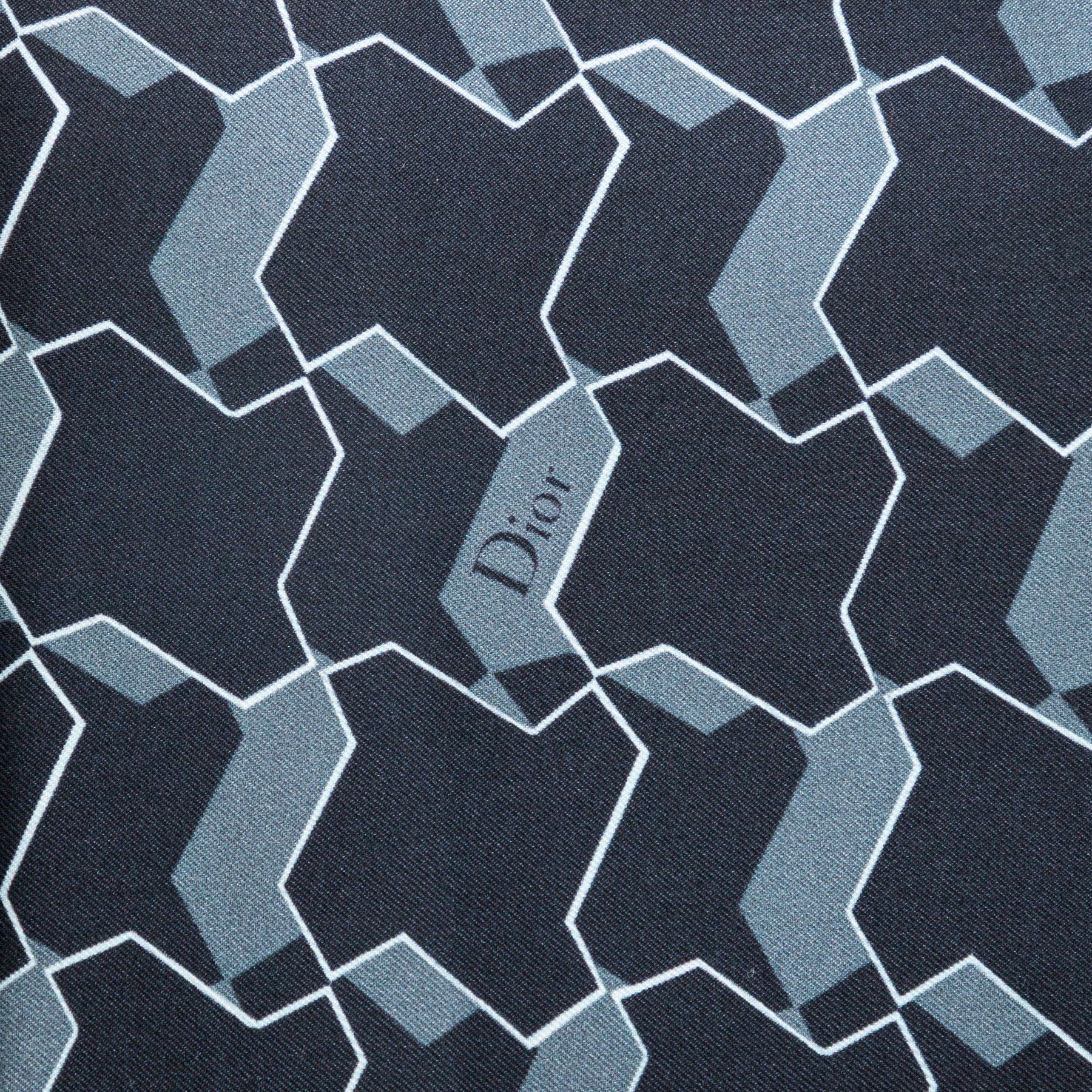 Expertly crafted from luxurious silk, the Dior scarf features a sophisticated abstract pattern in dark grey tone with subtle Dior logo detailing. Stay stylish and chic with this square scarf.