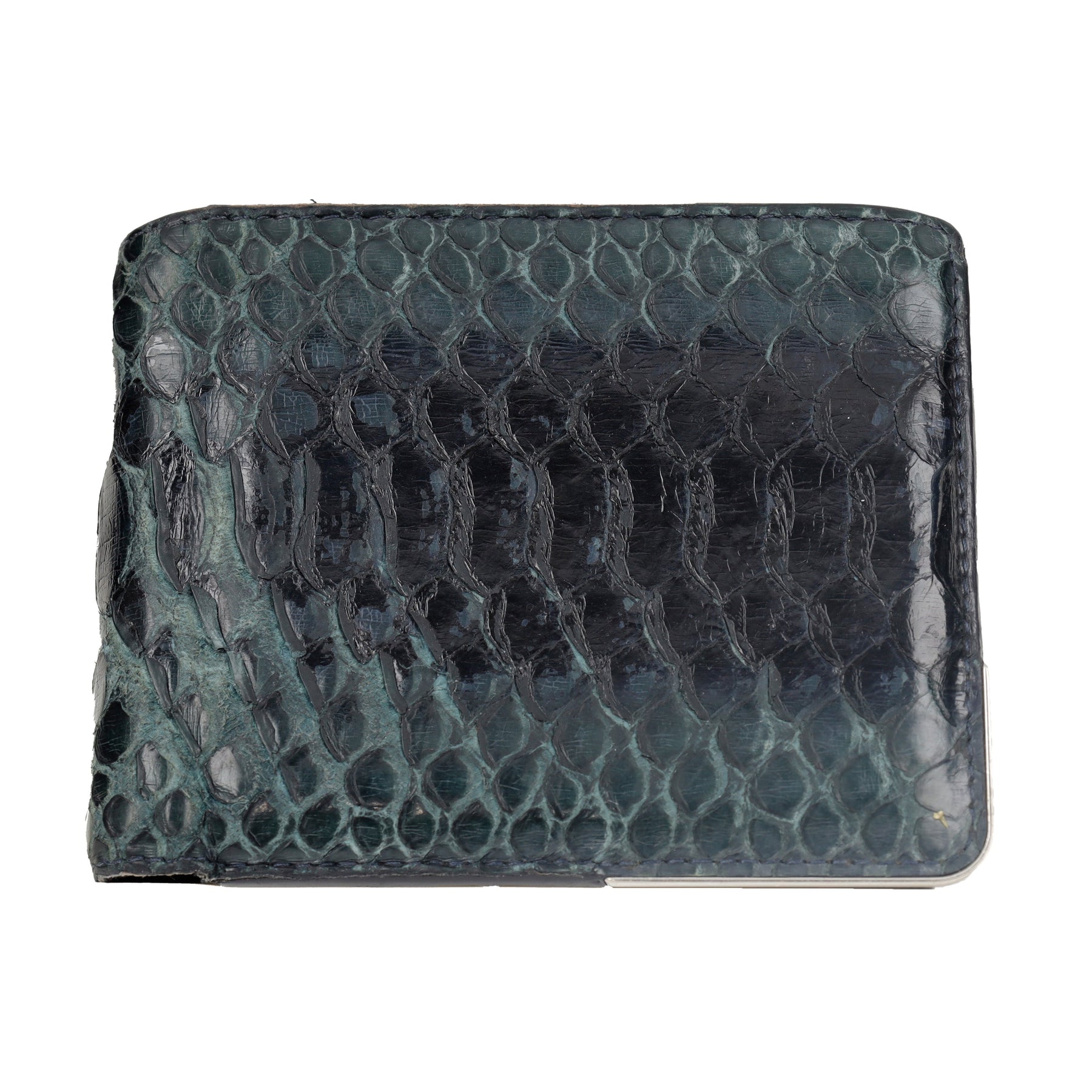 Crafted with luxurious snakeskin leather in a dark green and black ombre, this Dior wallet features a main compartment with a divider, as well as multiple card slots and silver metal accents.
