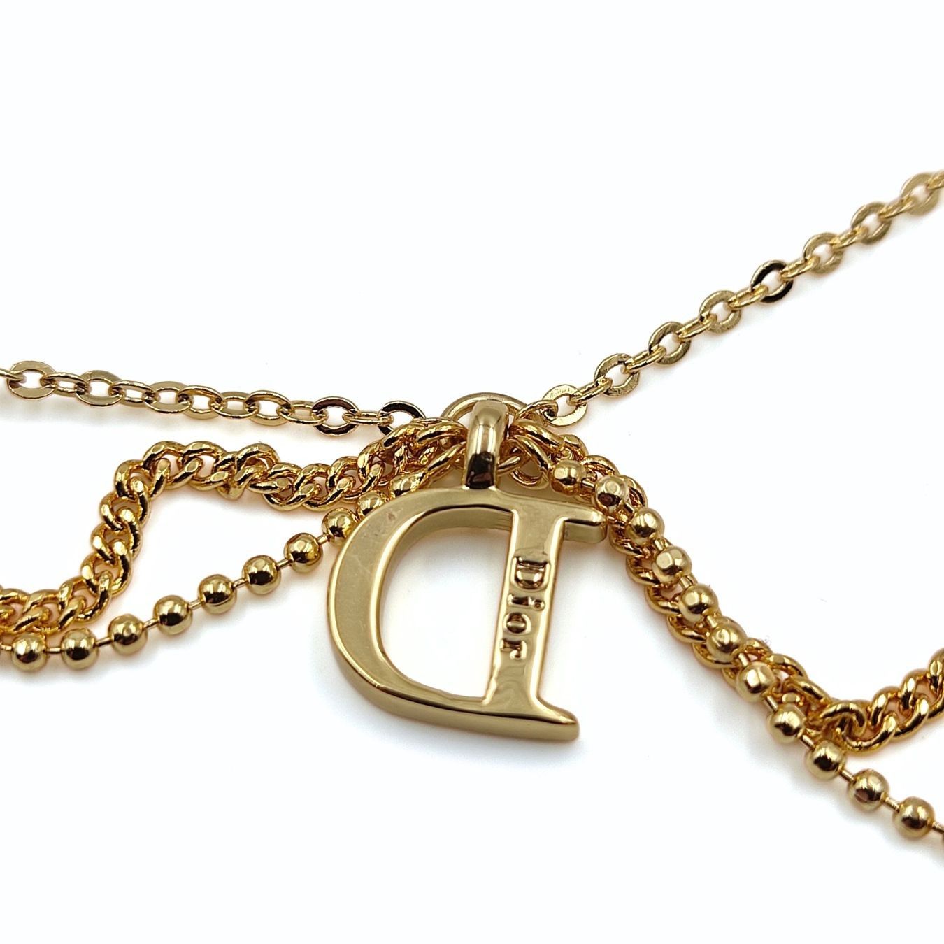 Dior women's necklace in golden metal and rhinestones.
